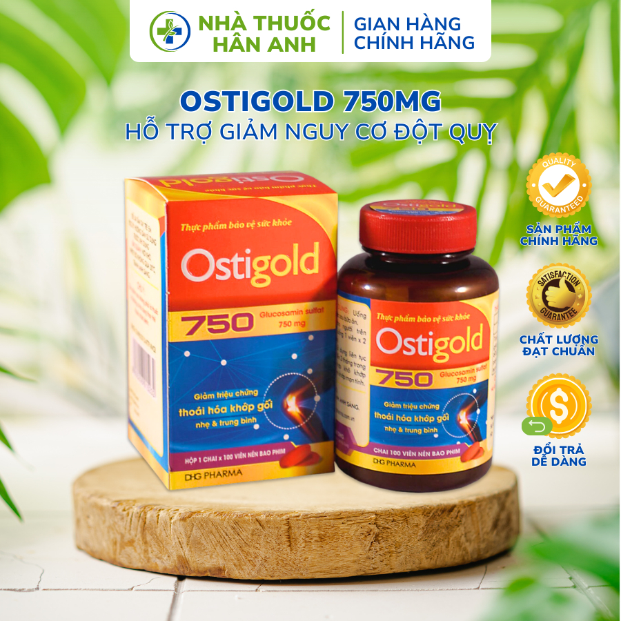 Glucosamin 750MG - Ostigold 750mg Dược Hậu Giang, Bảo Vệ Sức Khoẻ Và Cải Thiện Sụn, Lọ 100 Viên