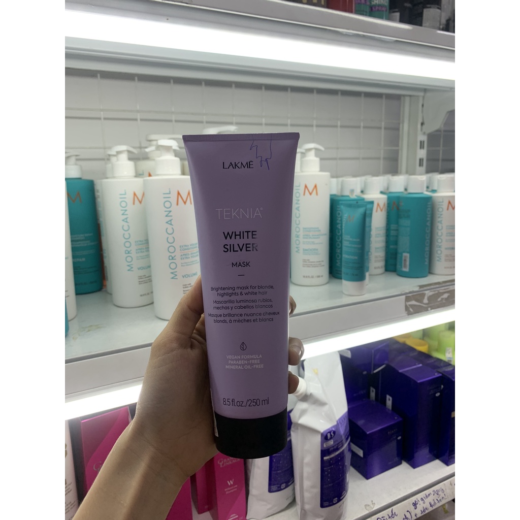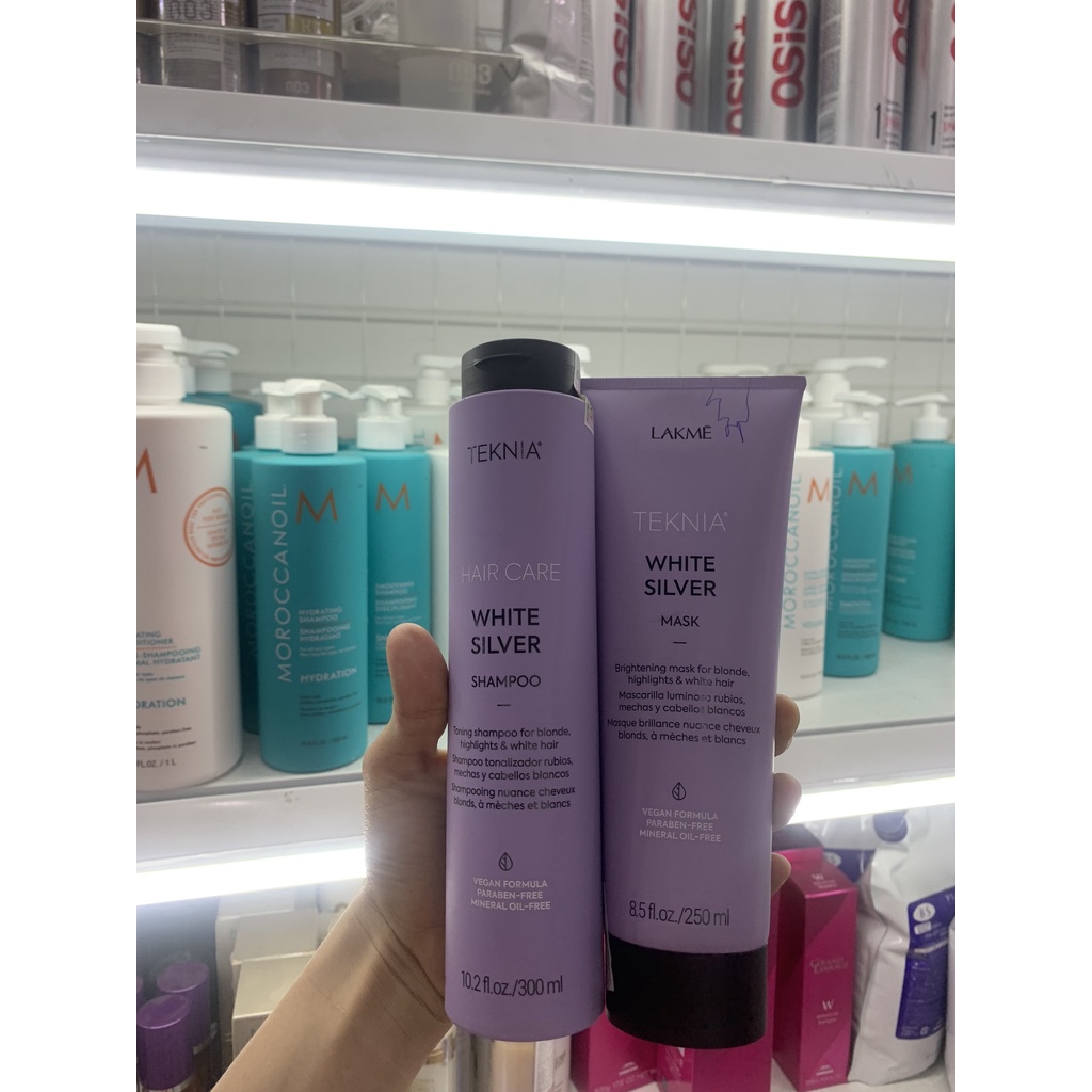 Dầu gội, mặt nạ tím khử vàng cho tóc rất sáng hoặc bạc Lakme Teknia White Silver Shampoo 300ml - 250ml (Chính hãng)