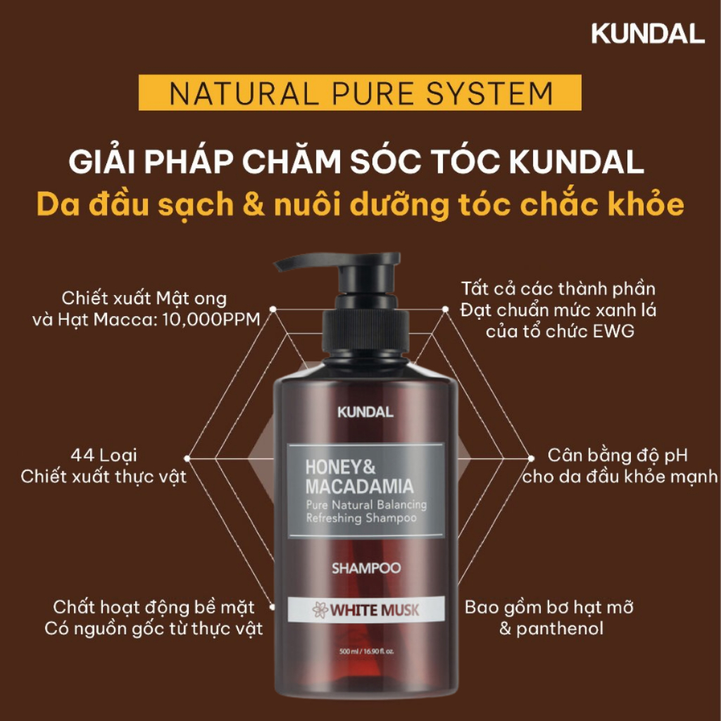 Dầu Gội Dầu Xả KUNDAL Cân Bằng Tự Nhiên Honey&Macadamia 500ml-1058ml