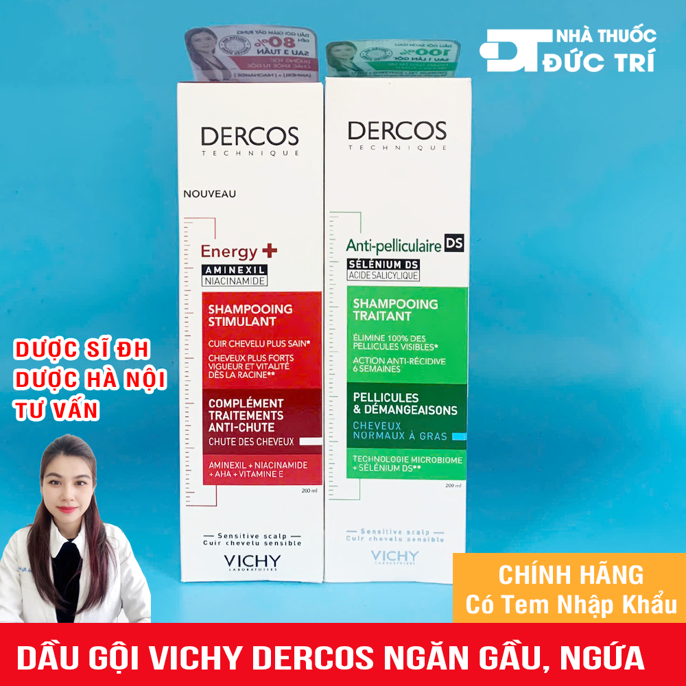 Dầu gội Vichy Dercos ngăn ngừa Gàu,nấm da đầu, hết dầu, hết bết dính dành cho tóc gầu và dầu Chính hãng.