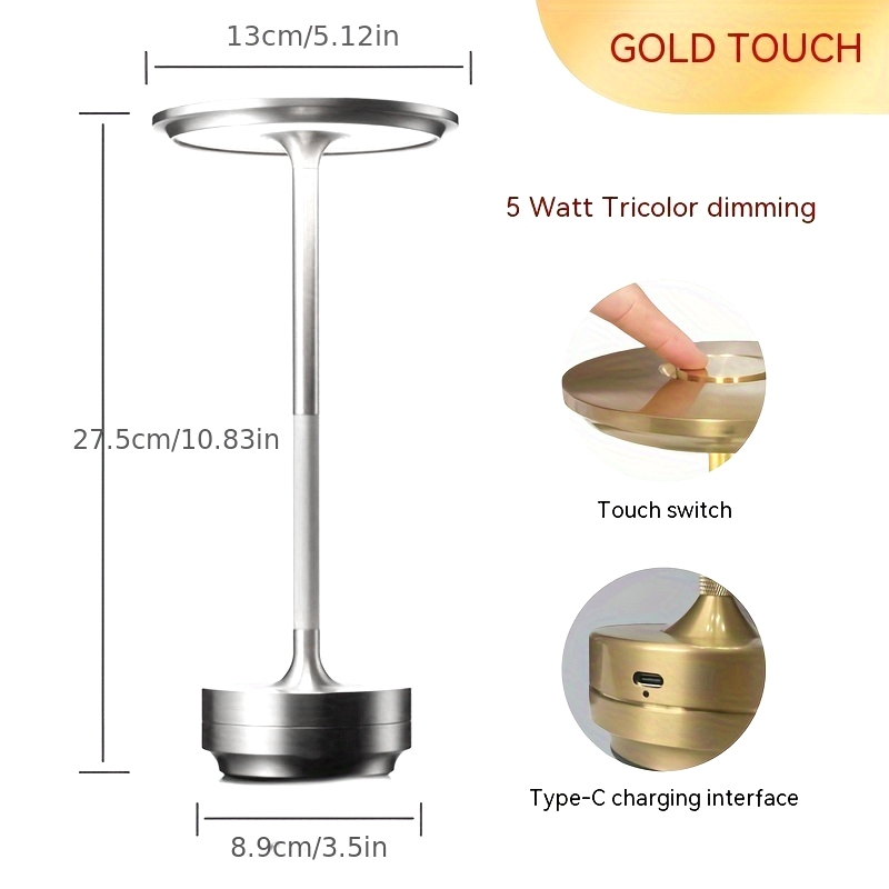 Đèn bàn quầy bar Đèn bàn kim loại LED USB có thể sạc lại Kiểm soát cảm ứng Trang trí phòng ngủ Chiếu sáng đầu giường