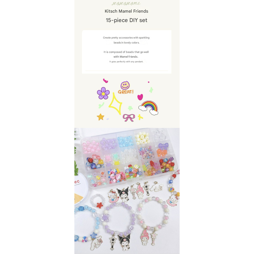Kitsch Bộ vòng tay hạt DIY | Bộ hạt đầy màu sắc 15 phần