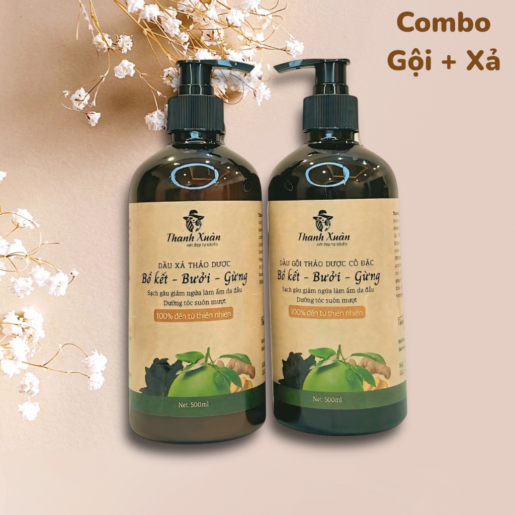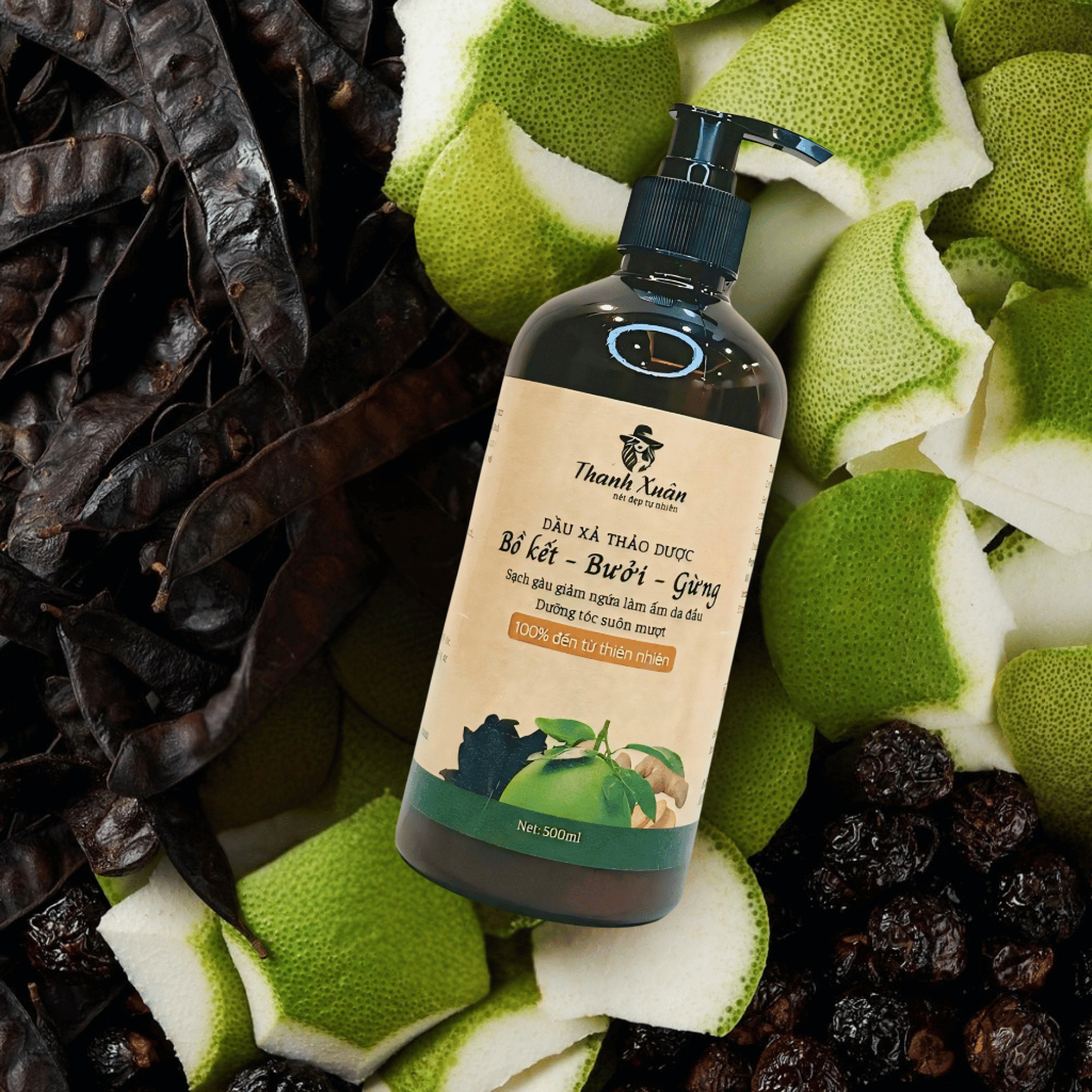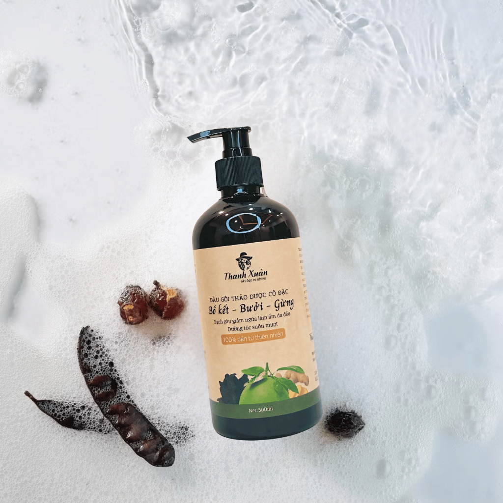 Dầu gội Bồ kết bưởi gừng, hỗ trợ mọc tóc, giúp cho mái tóc mềm mượt Thanh Xuân 500ml.
