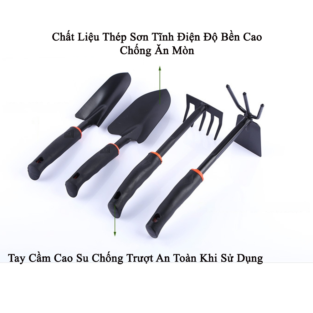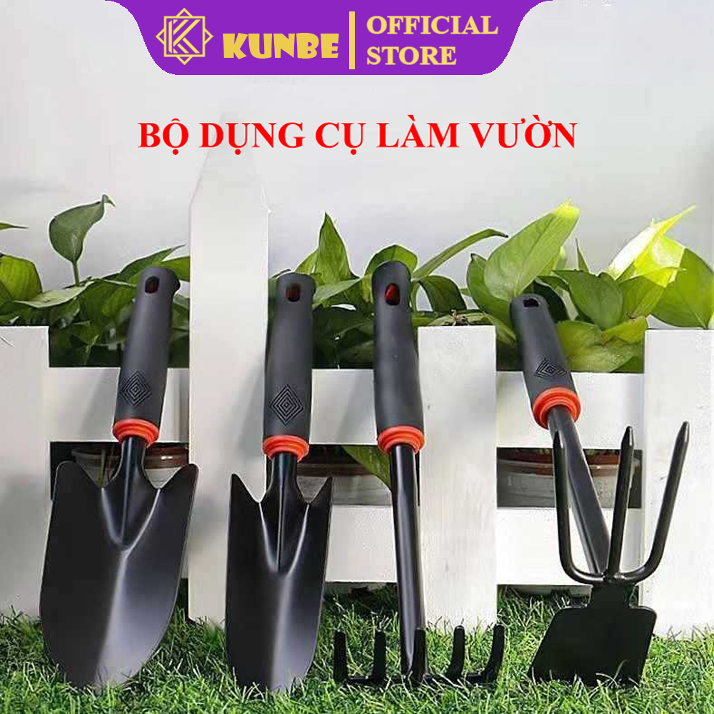 Bộ Dụng Cụ Đồ Làm Vườn Chăm Sóc Cây Cảnh Mini KUNBE 4 Chiếc Sơn Tĩnh Điện Loại To