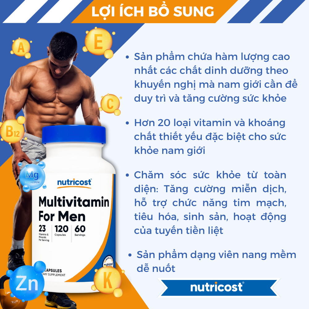Nutricost Multivitamin For Men - Viên Uống Bổ Sung 23 Loại Vitamin Và Khoáng Chất Cần Thiết Cơ Thể
