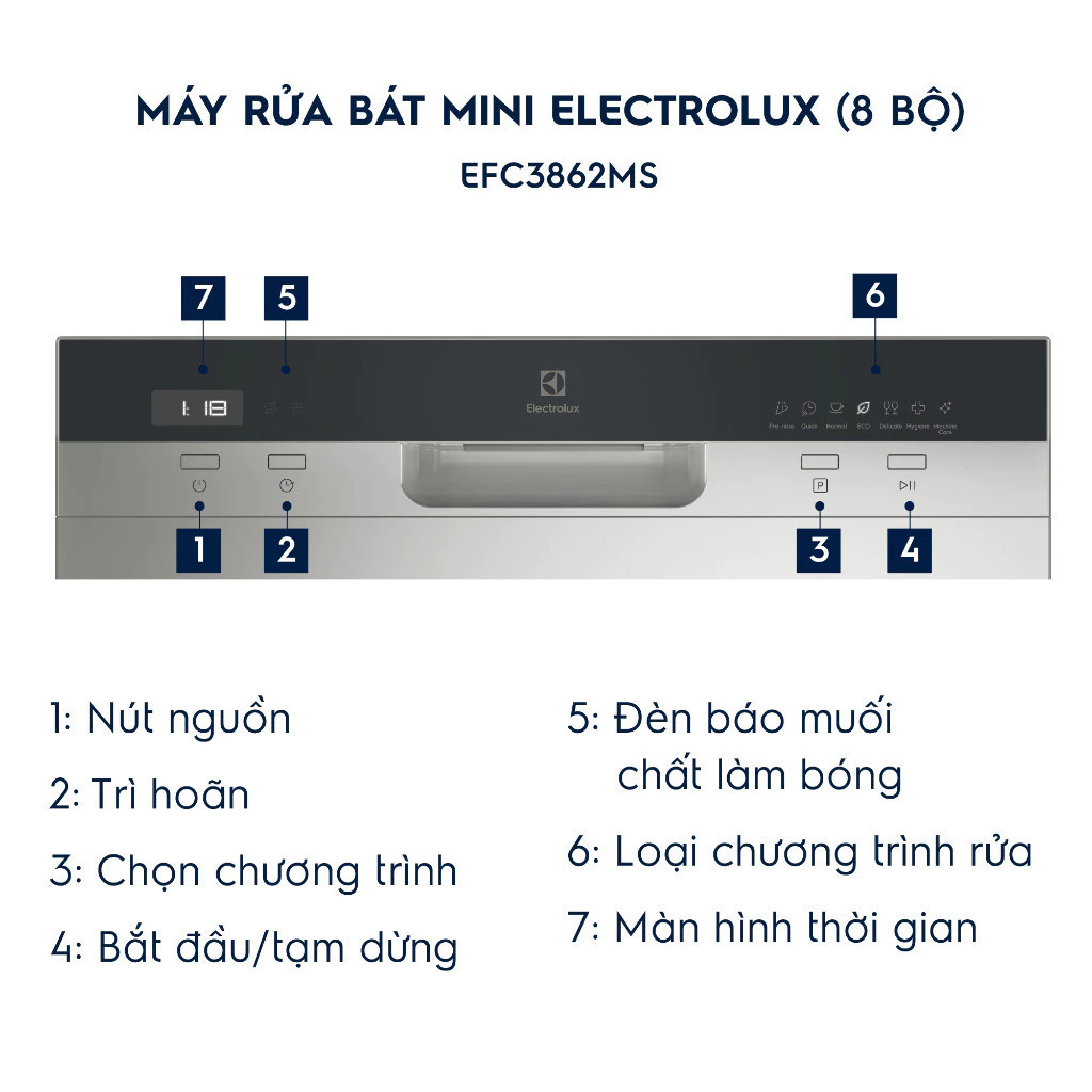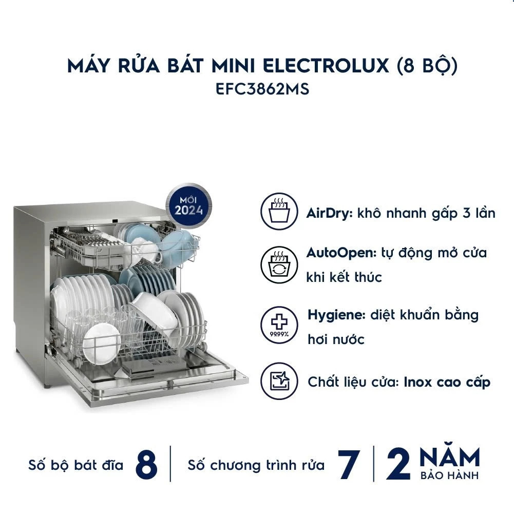 [Hỏa tốc 2h] Máy Rửa Bát Mini Electrolux 8 bộ EFC3862MS, tự động mở cửa, sấy khô
