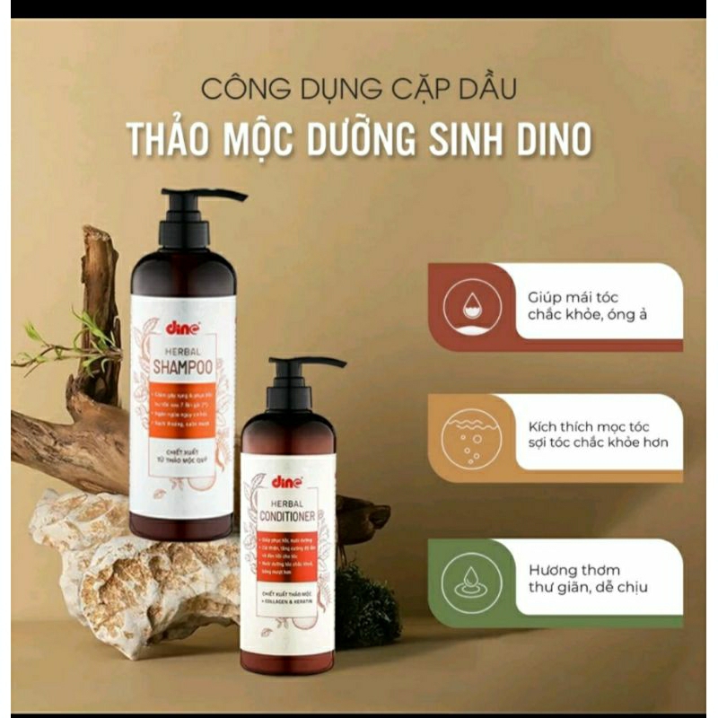 Cặp dầu gội xả thảo mộc Dino 800ml×2 và 500ml×2