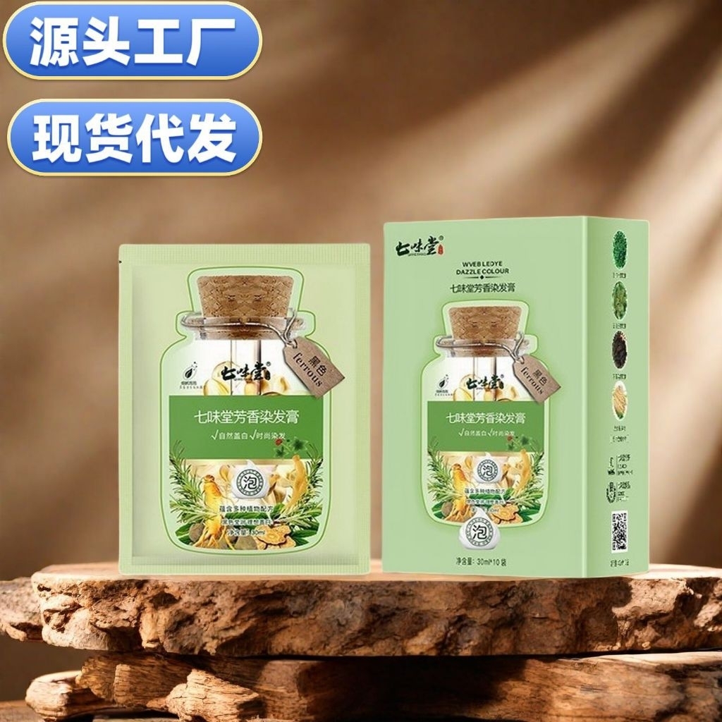 [ Xanh lá ] 1 Hộp 10 Gói Dầu Gội Nhộm Thảo Dược Nhộm Đen Tóc , Lên Màu Tự Nhiên
