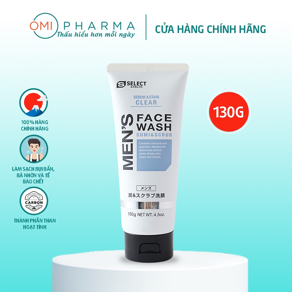 Sữa Rửa Mặt Hạt Chứa Than Hoạt Tính Dành Cho Nam S Select Nhật Bản (tuýp 130g)