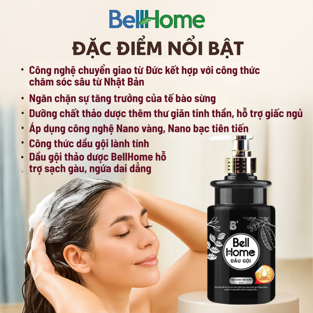 Dầu Gội Thảo Dược BellHome 500ml, Giúp sạch gàu, nuôi dưỡng tóc chắc khỏe, ngăn rụng tóc