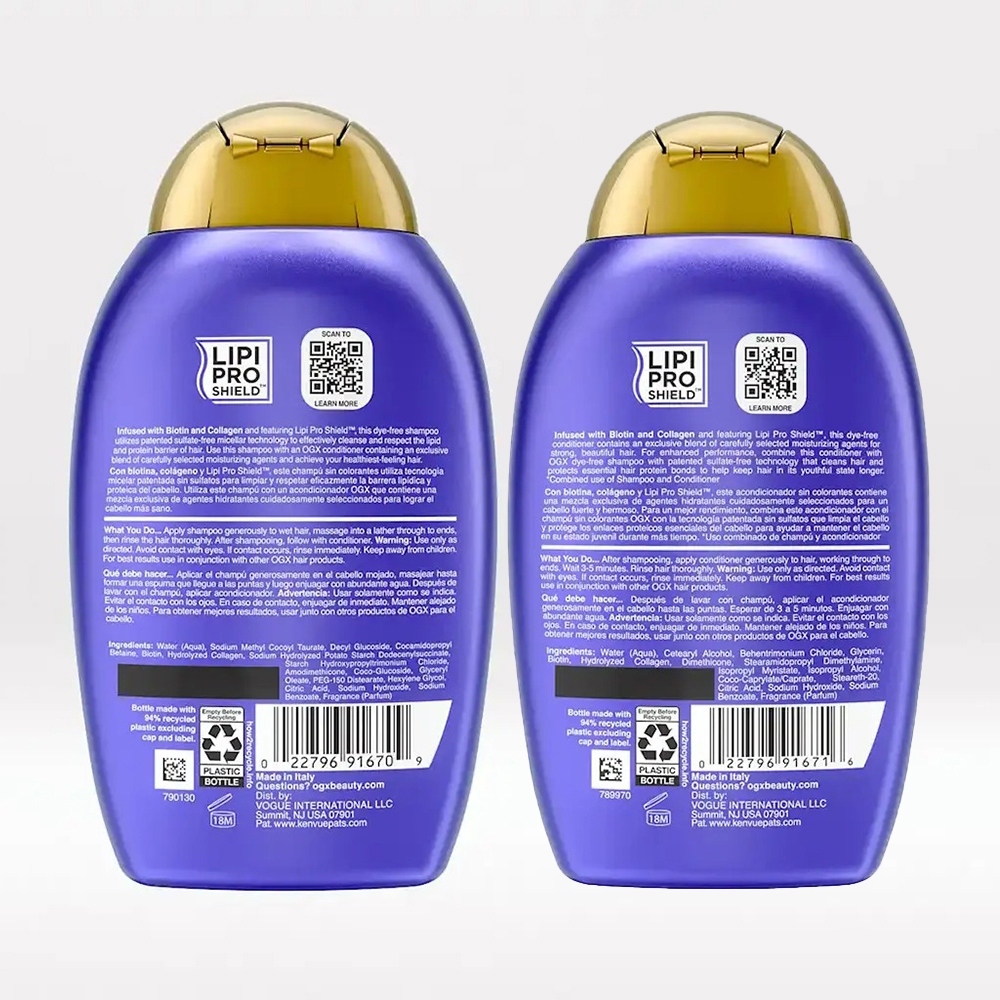 [HÀNG MỸ] Bộ dầu gội + xả OGX Thick & Full + Biotin & Collagen, 2 x 385ml