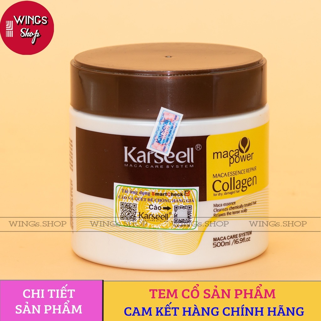 Kem Hấp Tóc, Ủ Tóc Collagen Karseell Phục Hồi Chuyên Sâu, Giúp Tóc Siêu Mềm Mượt 500ml, Wings Shop