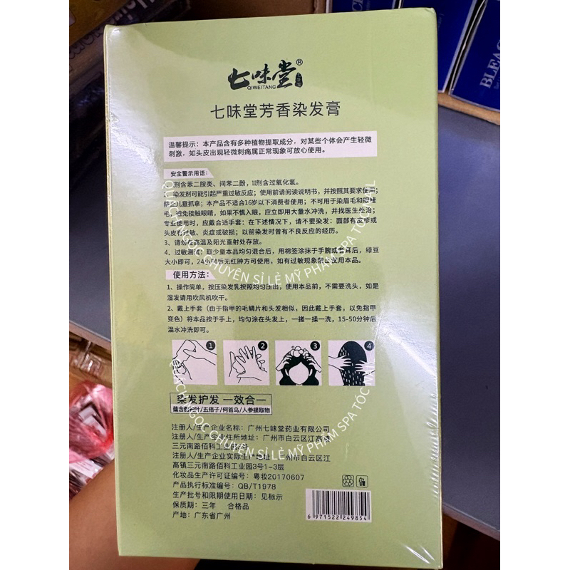 Hộp 10 gói Dầu Gội Nhuộm Tóc Thảo Dược QiWeiTang Màu Đen, Nâu Hạt Dẻ (Phủ Bạc)