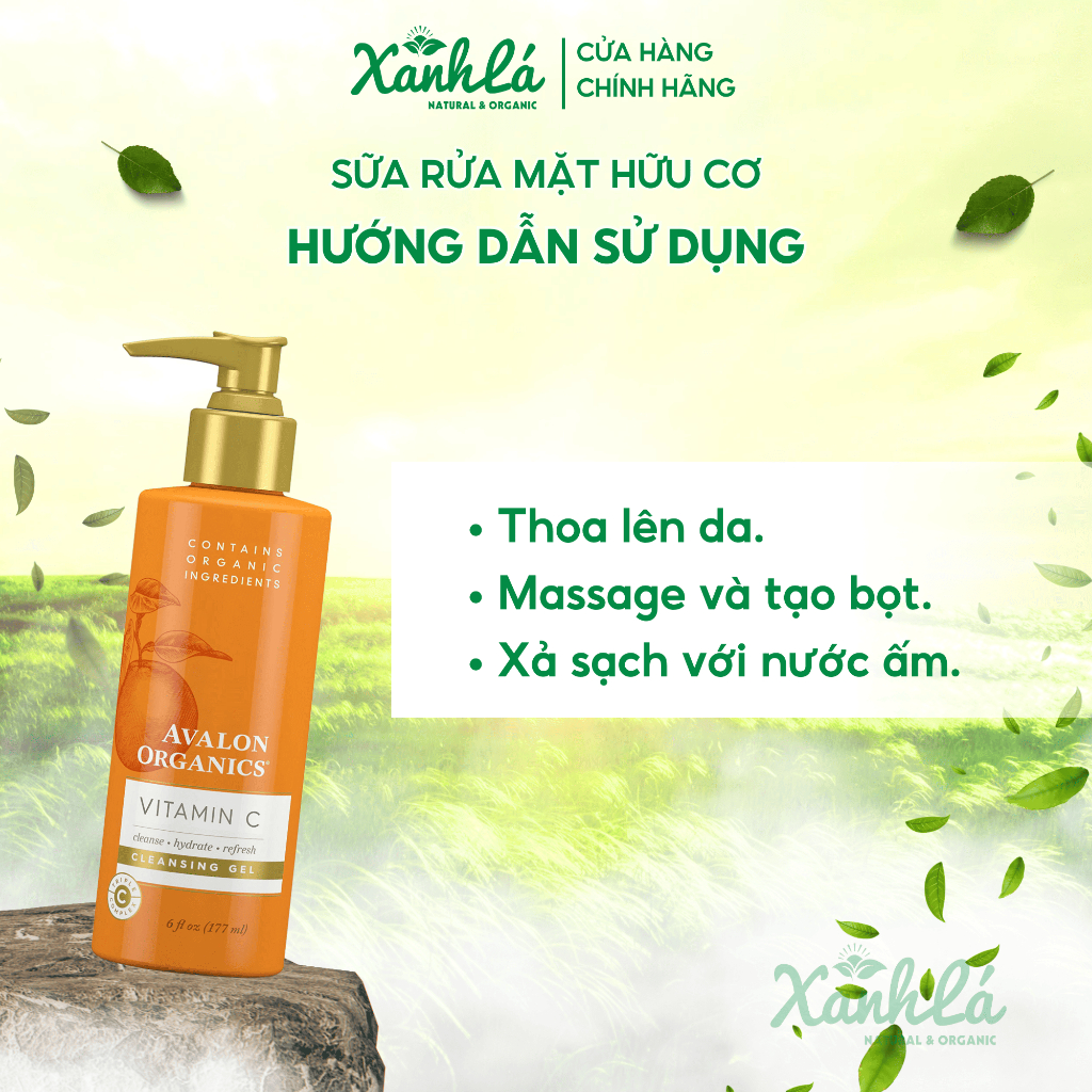 Sữa Rửa Mặt Hữu Cơ Avalon Organics Vitamin C Cleansing Gel Nuôi Dưỡng Làn Da Rạng Rỡ Chai 177ml