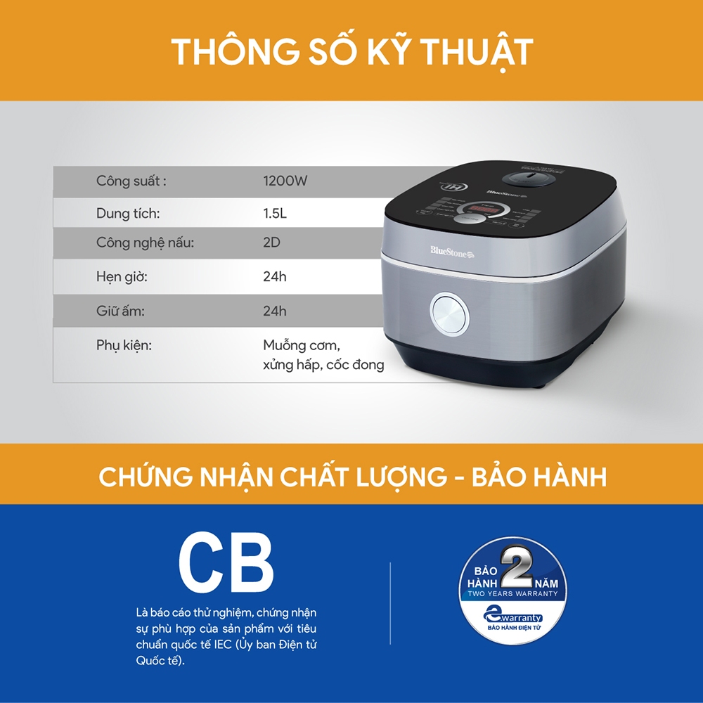 Nồi cơm điện tử cao tần Bluestone 1.5 lít RCB-5995 - Hàng chính hãng