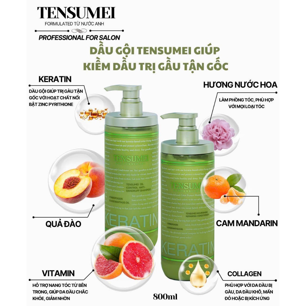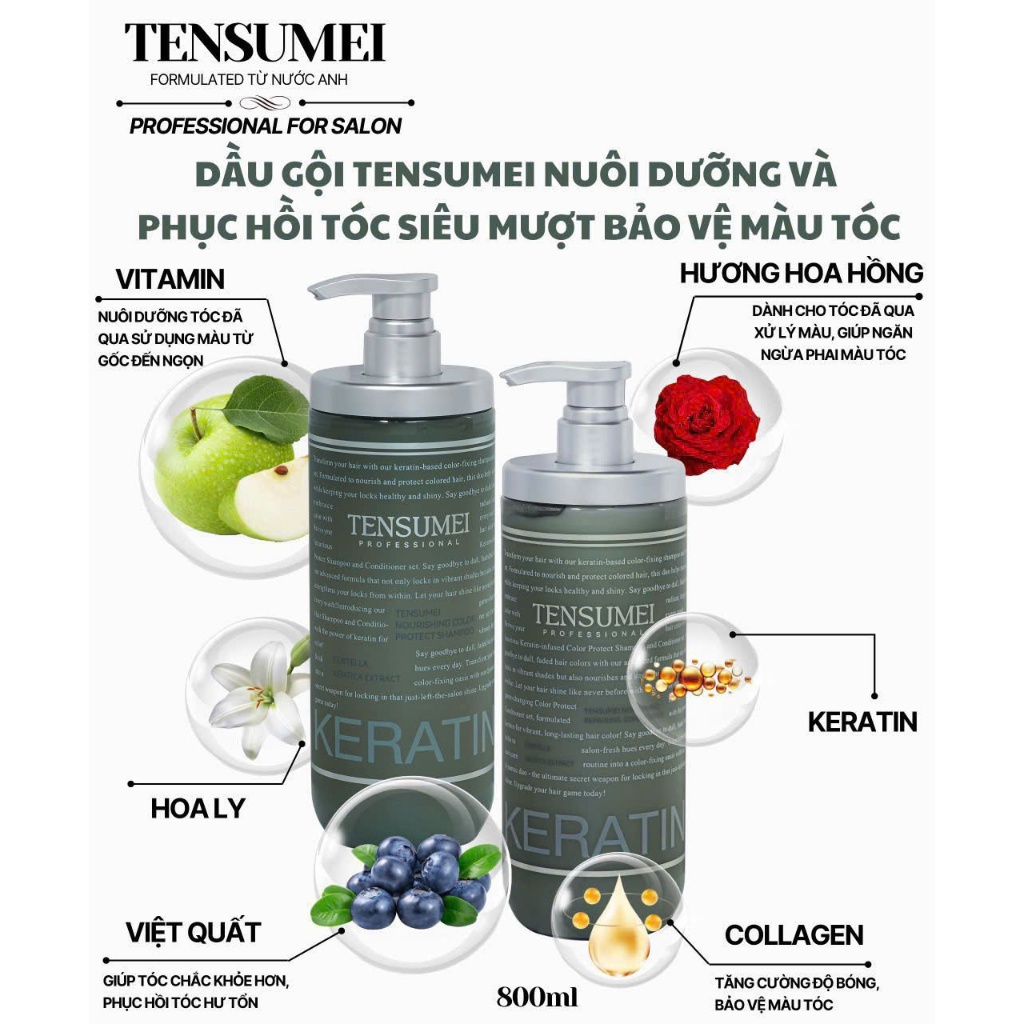 Cặp Dầu Gội Xả Tensumei Keratin 800ml x2. Hương Nước Hoa, Kiềm Dầu, Ngăn Gàu Bảo Vệ Màu.NKPP ALYA VN