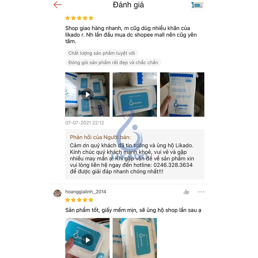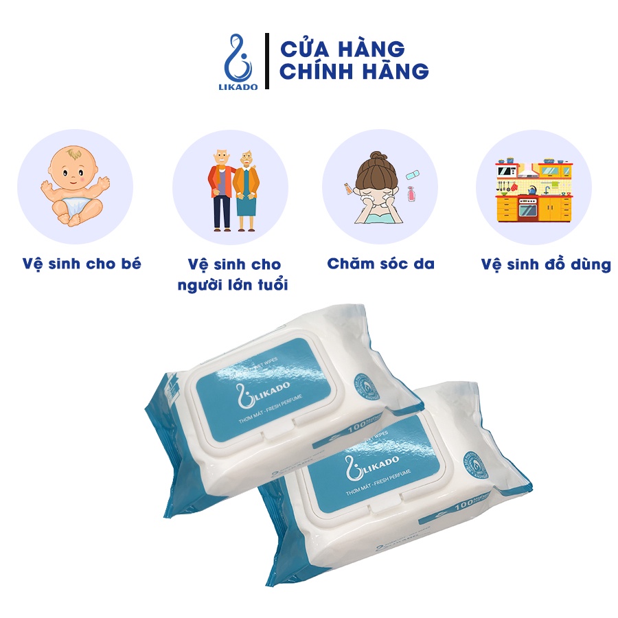 Khăn ướt không mùi cho bé Likado hộp 100 miếng(15x20cm)