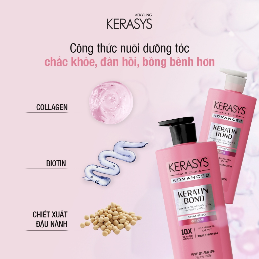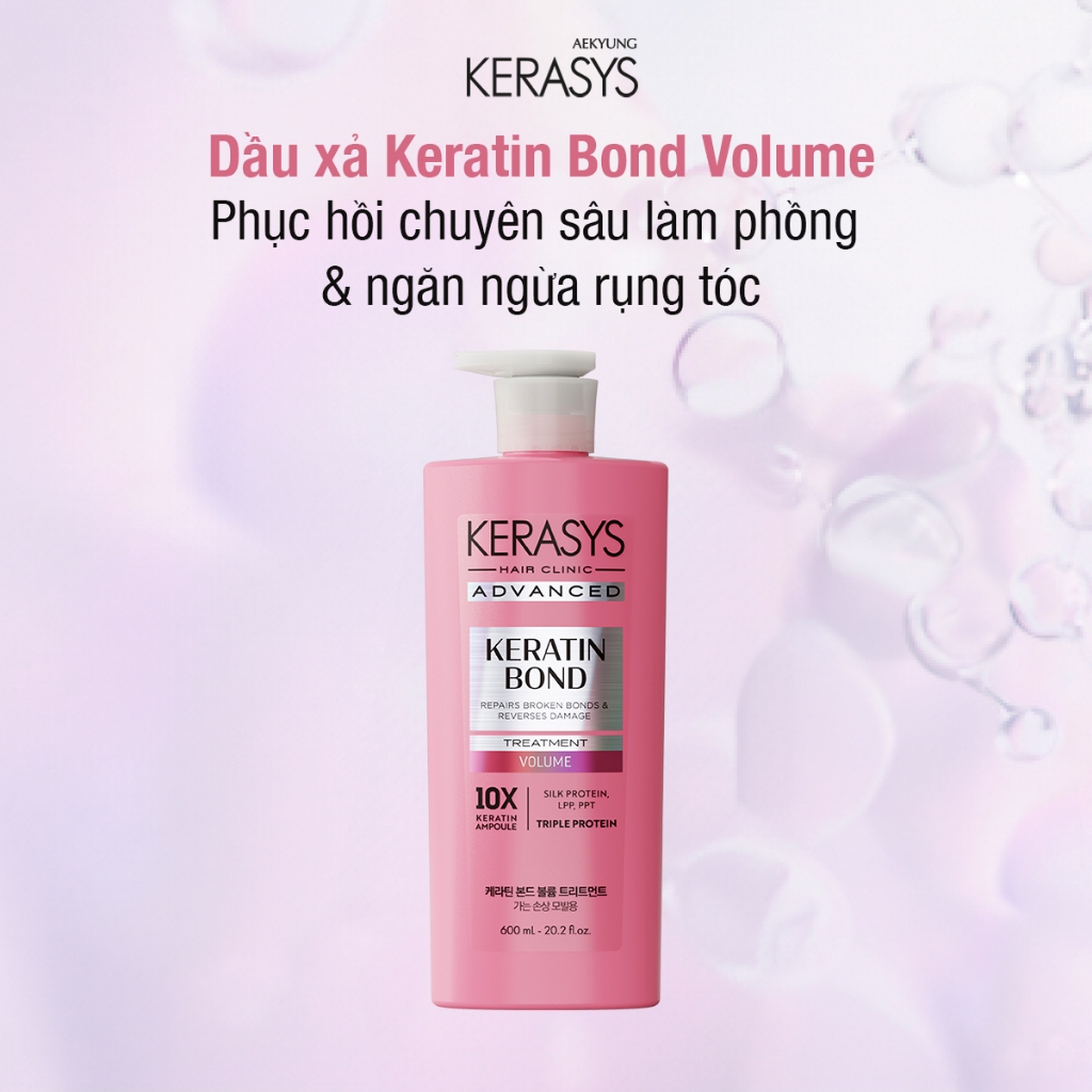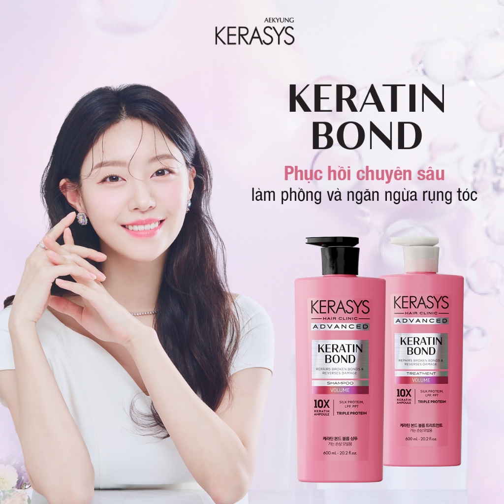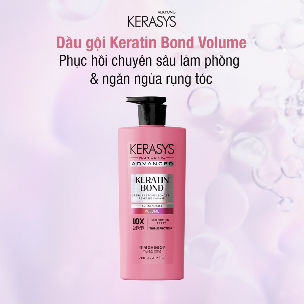 Cặp dầu gội xả Hàn Quốc giảm gãy rụng, phục hồi chăm sóc tóc Kerasys Keratin Bond Volume 600ml x2