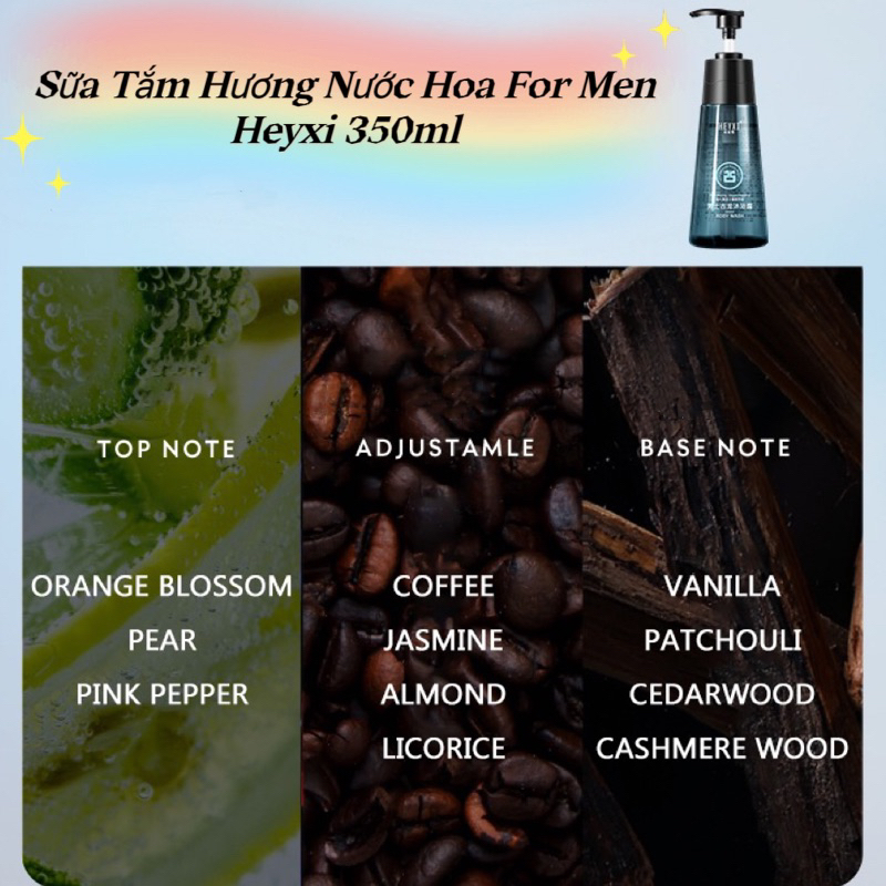 Sữa Tắm Hương Nước Hoa m Cho Nam Giới Heyxi For Men 350ml, Tạo Bọt Mịn, Giúp Làm Sạch Cơ Thể, Hương Thơm Tươi Mát