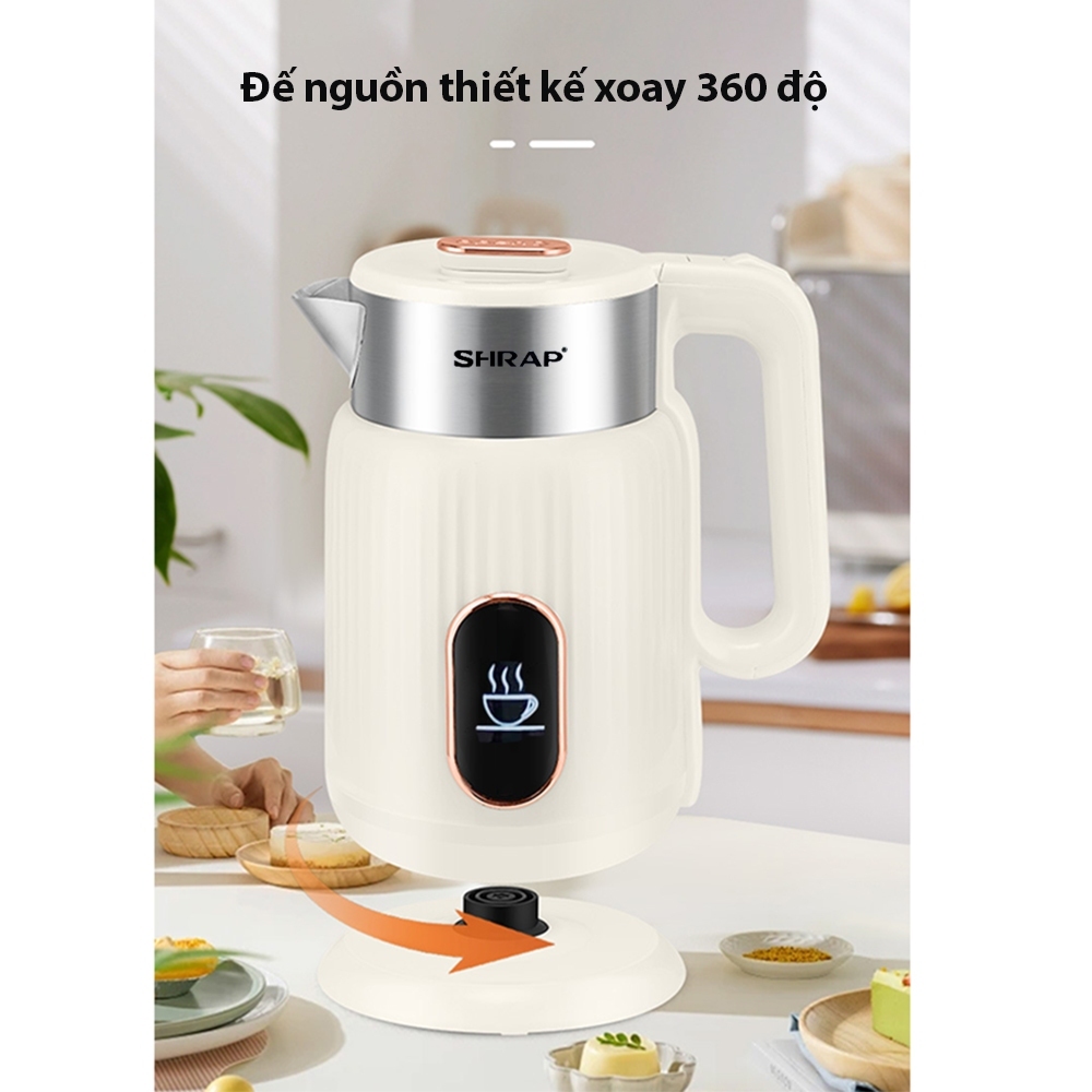 Ấm Siêu Tốc Mẫu Mới SHRAP SH-86 Dung Tích 2L Có 2 Lớp Cách Nhiệt, Công Suất 1500W Thân Chống Bỏng, Tự Động Ngắt Khi Sôi