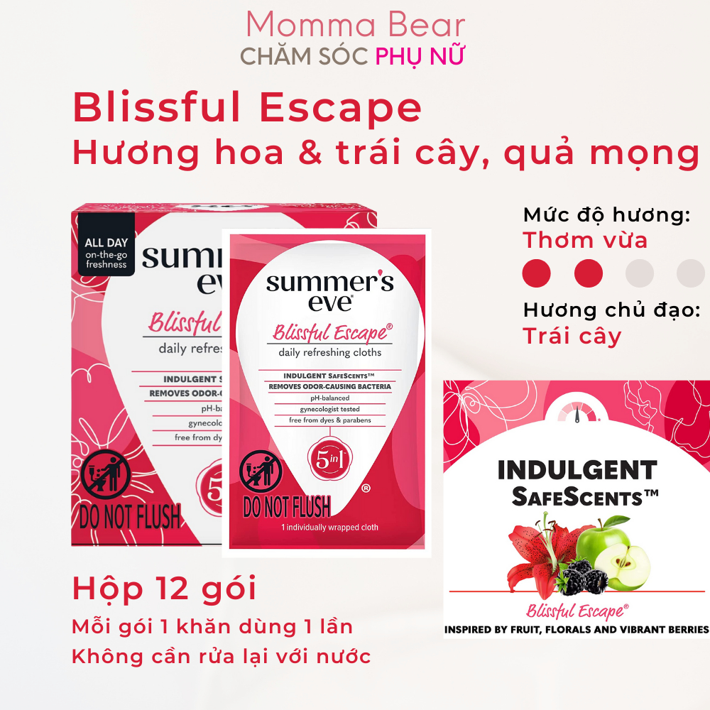 Khăn ướt vệ sinh vùng kín Summer's Eve, khăn giấy phụ khoa, vệ sinh, khử mùi vùng kín - Momma Bear