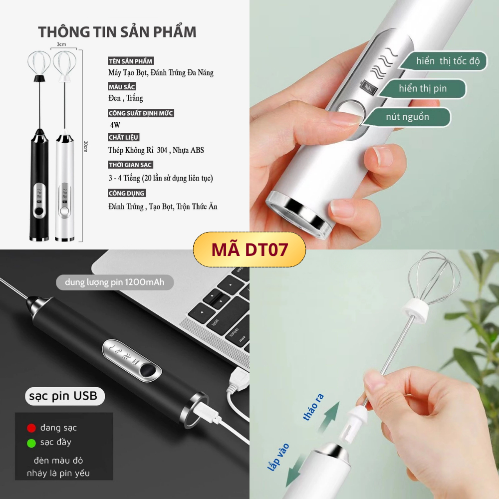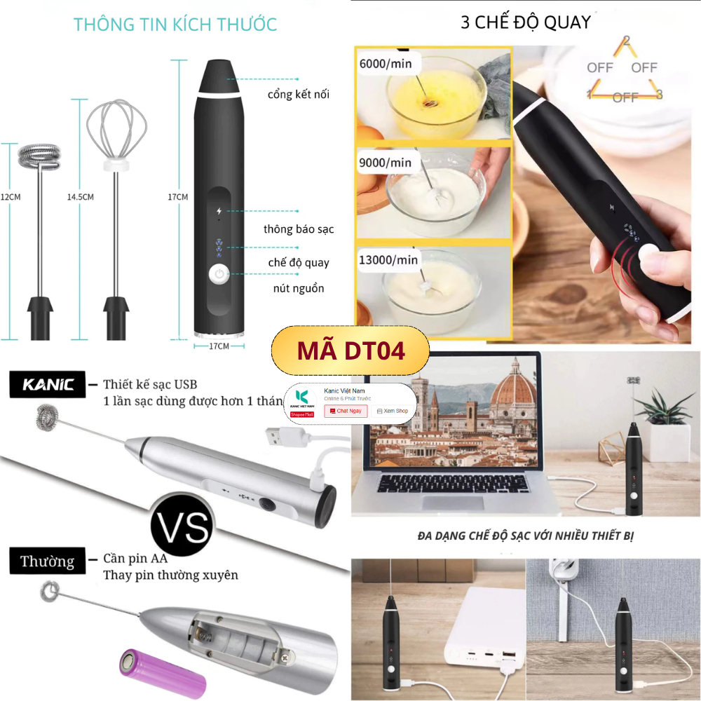 Máy tạo bọt cafe KANIC, dụng cụ đánh trứng mini cầm tay không dây pha chế tiện lợi 3 tốc độ sử dụng pin sạc usb cao cấp