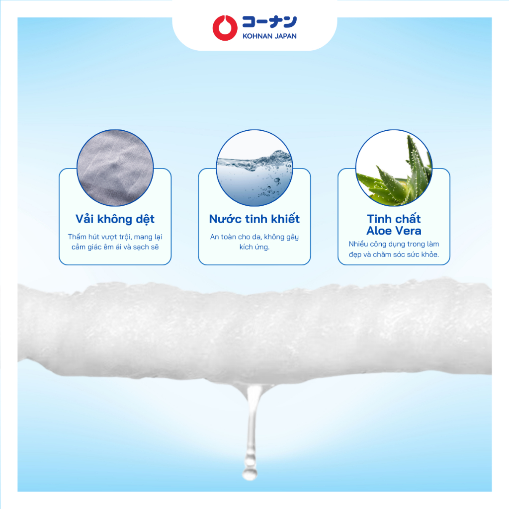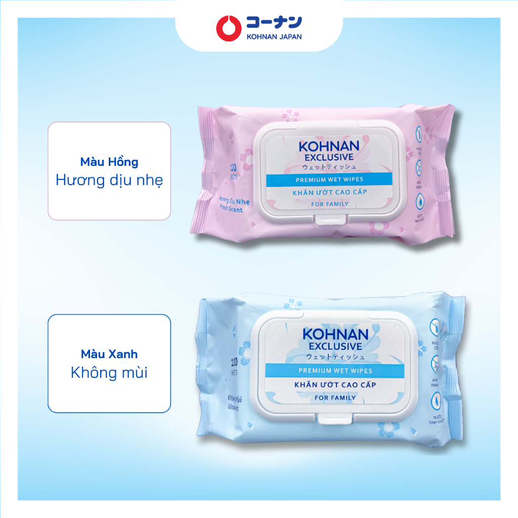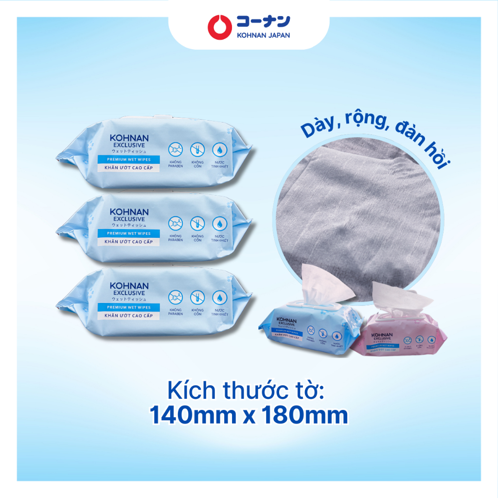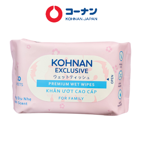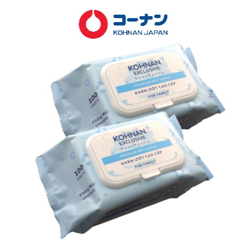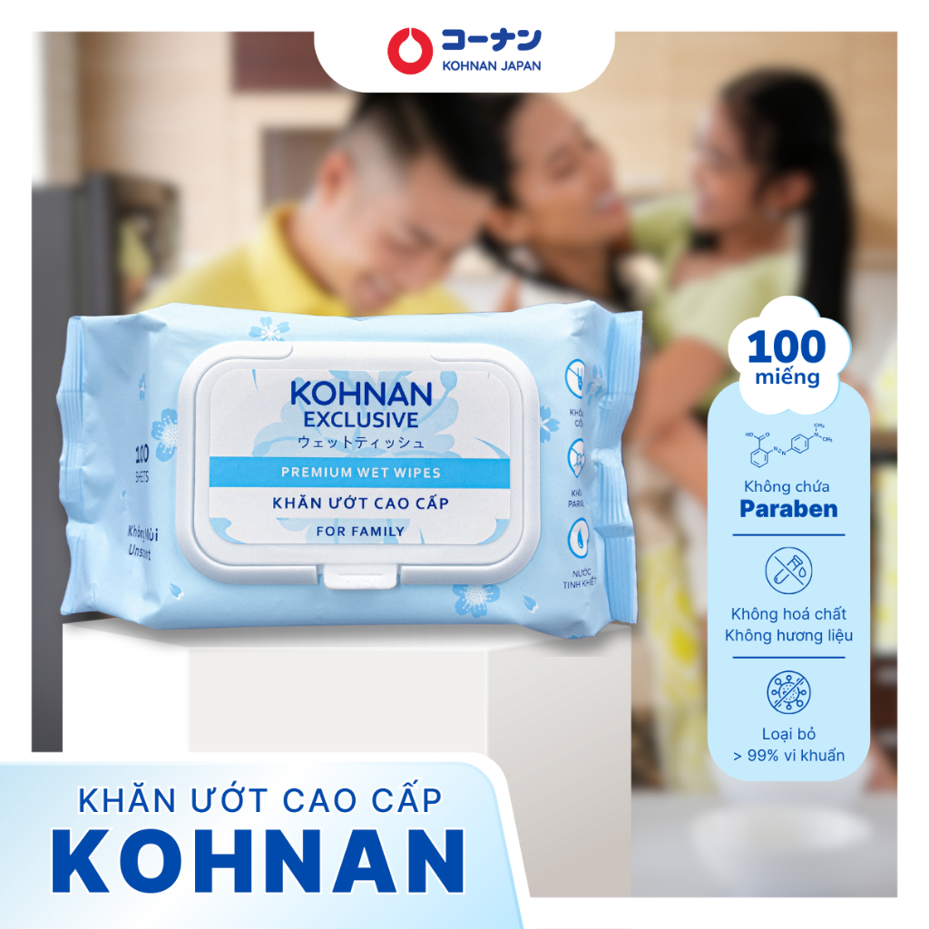 Khăn ướt cao cấp KOHNAN có nắp đậy, không cồn không paraben, mềm mịn 100 tờ/gói