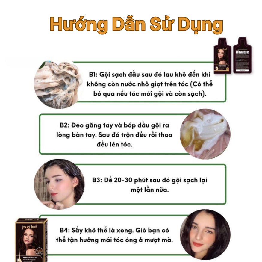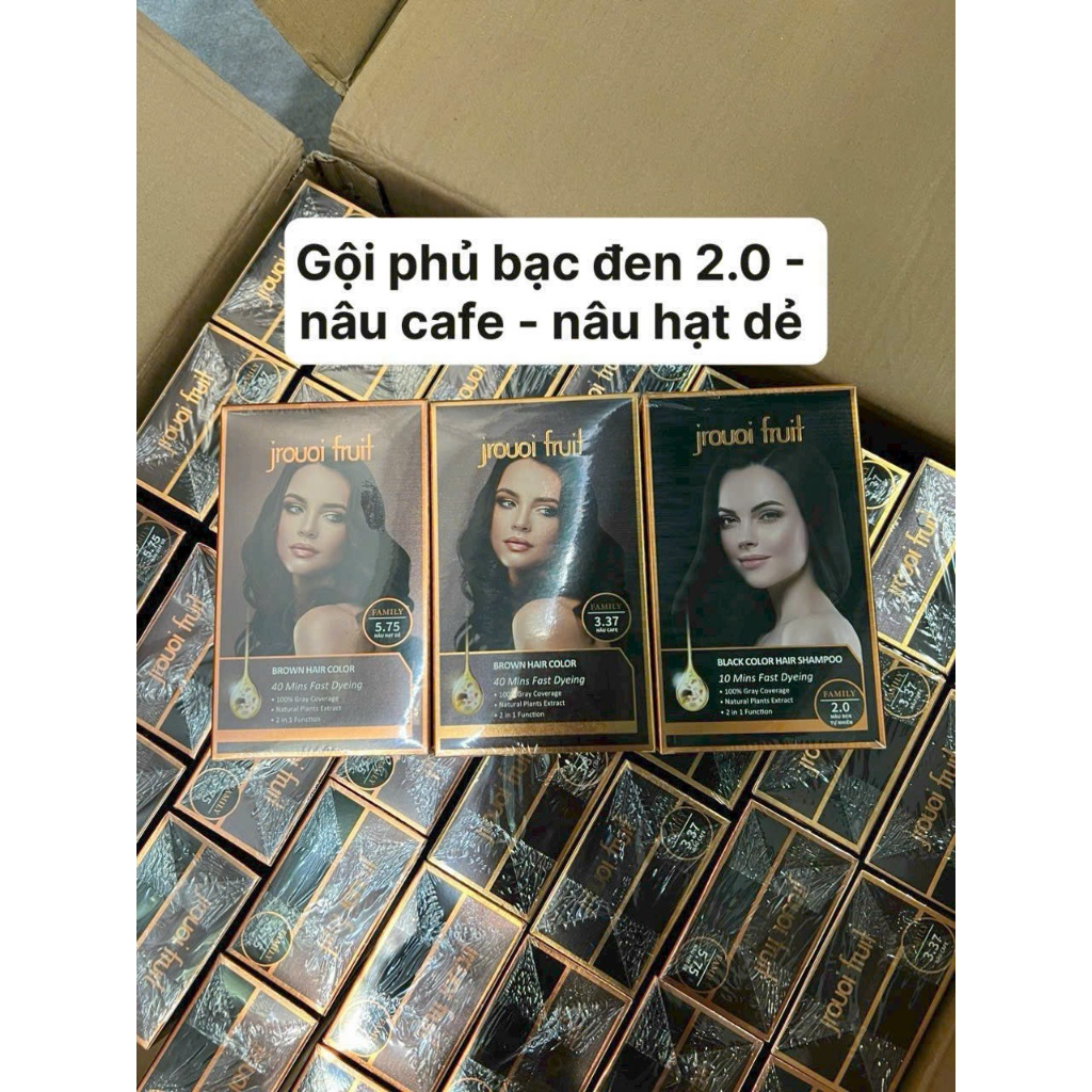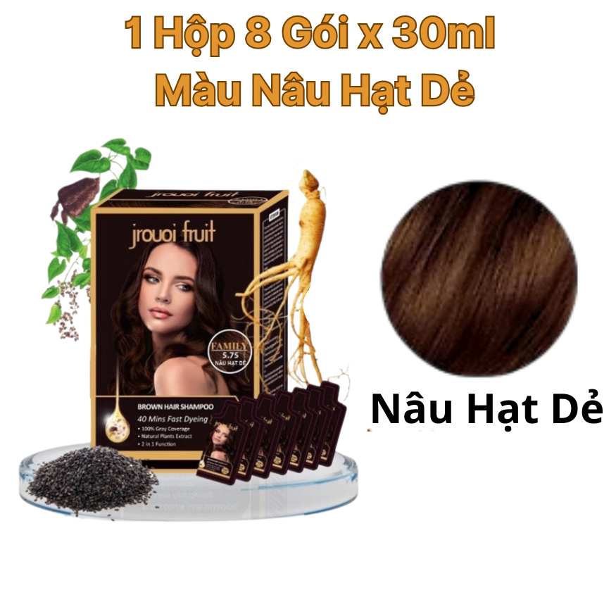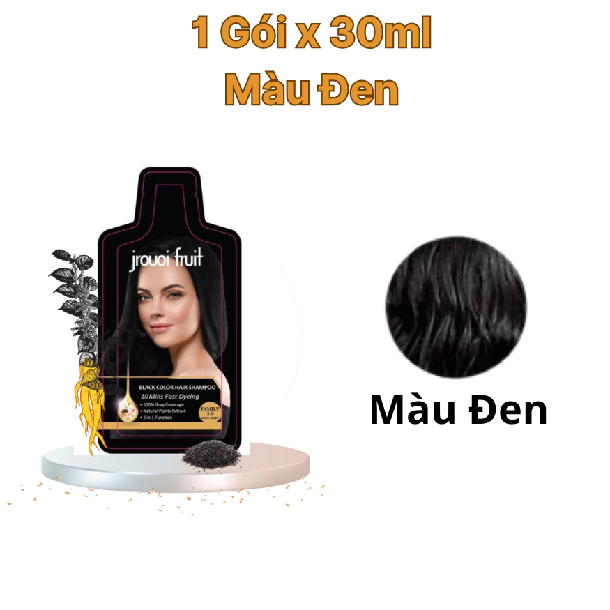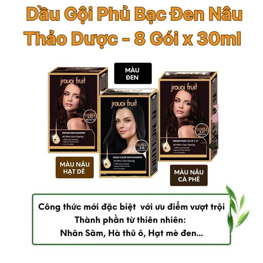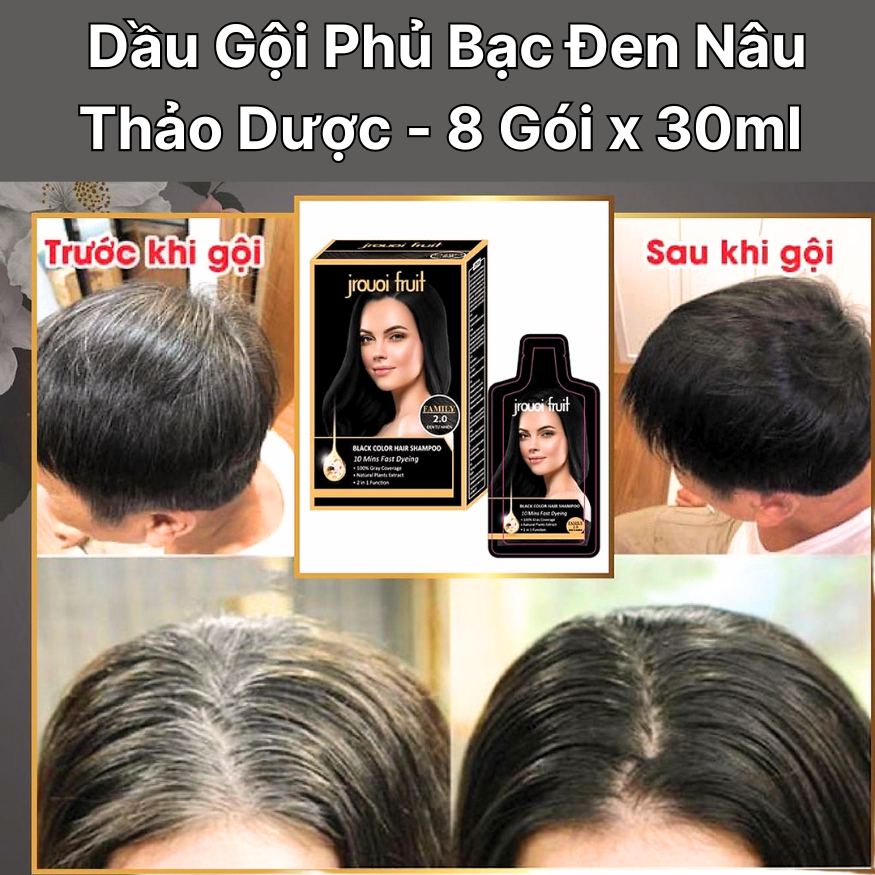 Dầu gội phủ bạc đen nâu , thuốc nhuộm tóc đen thảo dược Jrouoi Fruit - 8 gói x 30ml