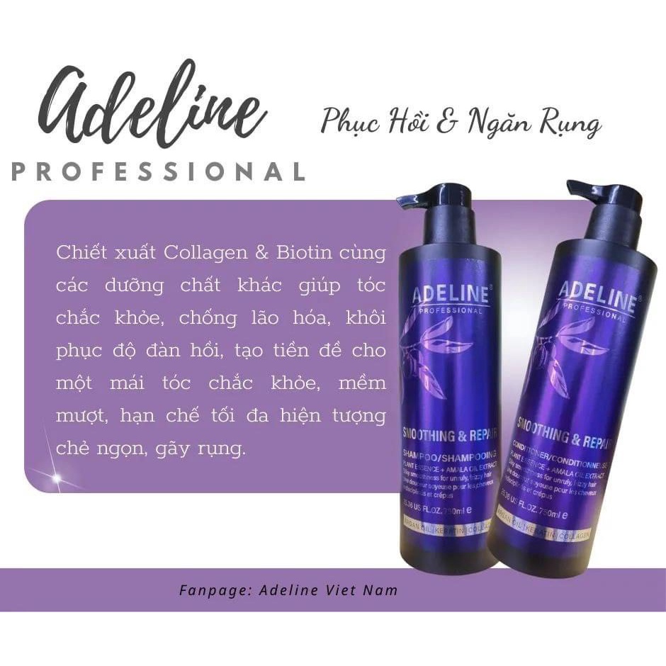 Cặp Gội Xả ADELINE PROFESSIONAL Siêu Phục Hồi Mềm Mượt, Ngăn Gãy Rụng