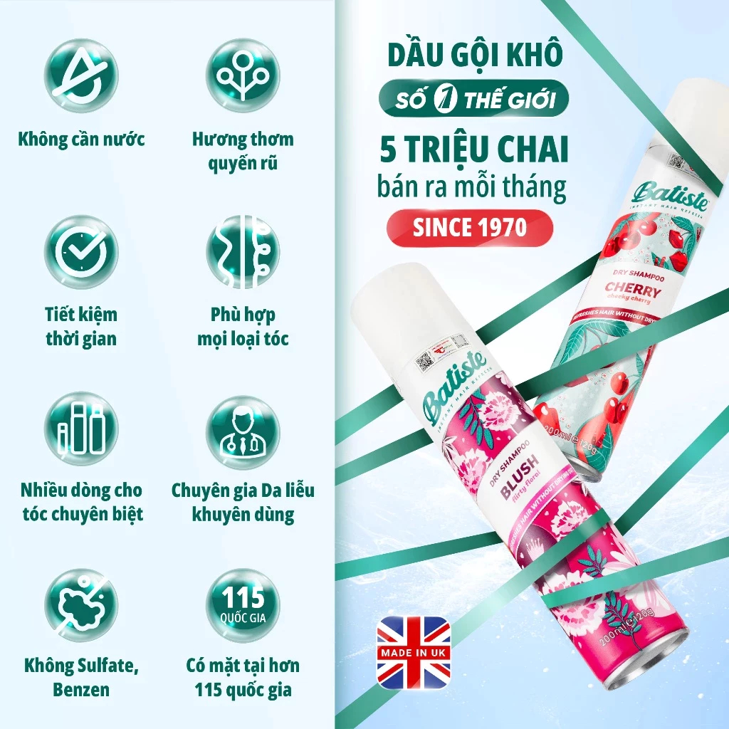 Dầu Gội Khô Batiste Dry Shampoo 200ml Hết Ngứa, Hết Bết Dính Tóc Bồng Bềnh Tức Thì _Mochica