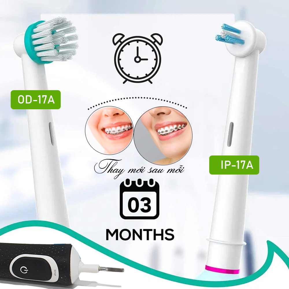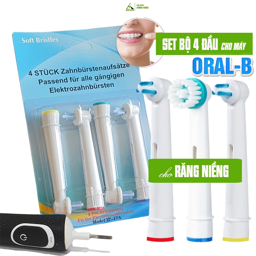Răng niềng cho Oral B Braun, IP17A, OD17A, bộ 4 đầu bàn chải đánh răng điện máy Minh House