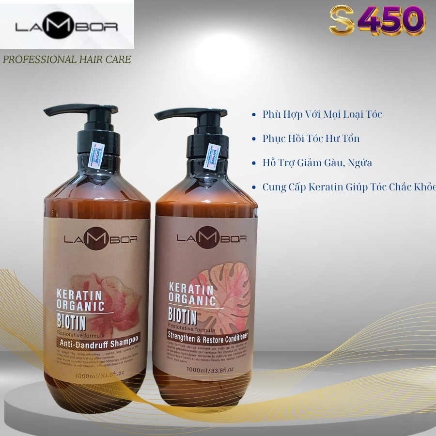 Dầu Gội Xả Lambor Keratin 500ML - 1000ML Phục Hồi Tóc Mềm Mượt Giảm Gàu Rụng Tóc, Hương Nước Hoa