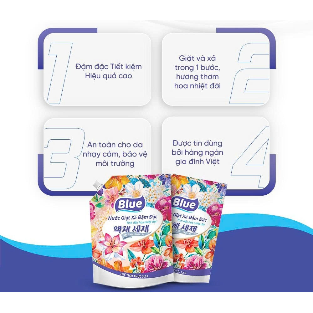 Nước Giặt Xả Blue Đậm Đặc 3.6L Tinh Dầu Hoa Nhiệt Đới, Sạch Sâu, Thơm Lâu, Dịu Nhẹ Tổng Kho Bình Võ