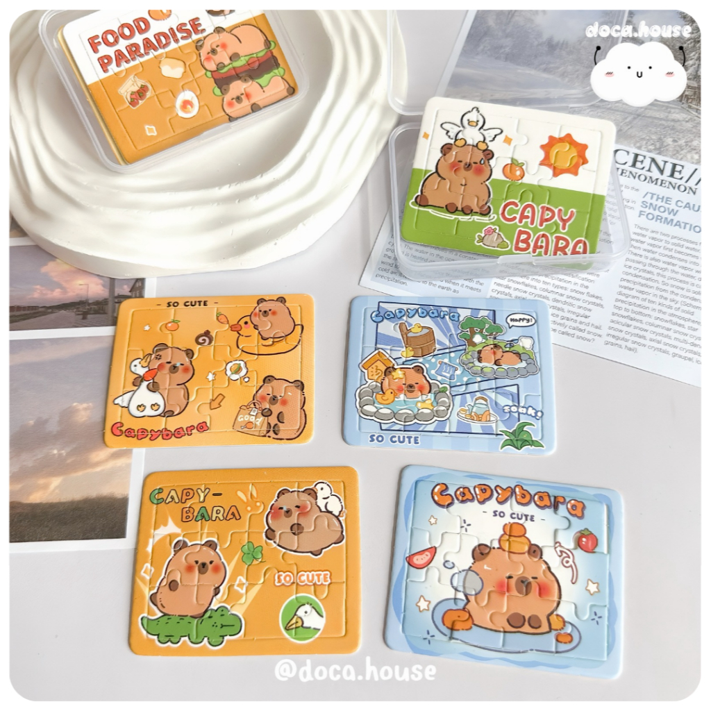 [MUA 3 CÒN 12K] Hộp 5 Tranh Ghép Hình Mini Chuột Lang Nước Capybara Đáng Yêu Đồ Chơi Tranh Ghép Cho Bé Giải Trí