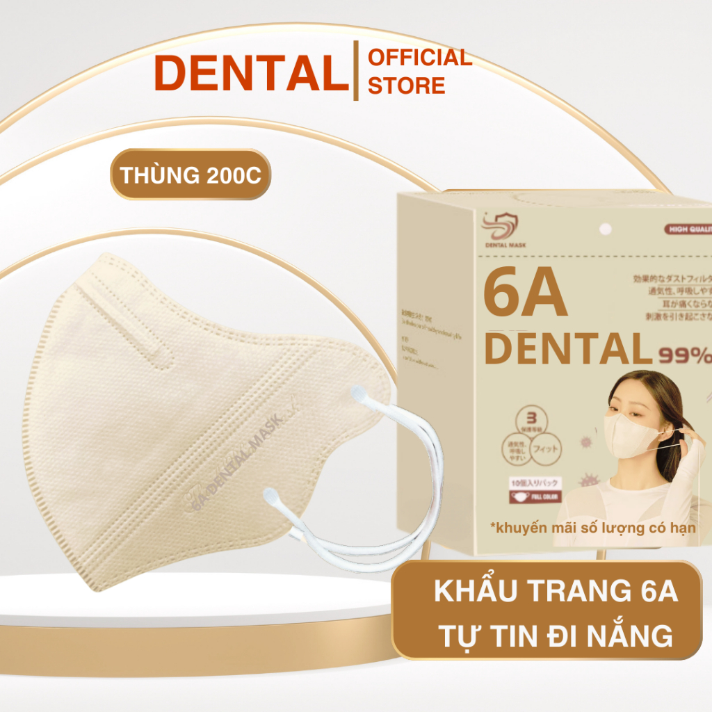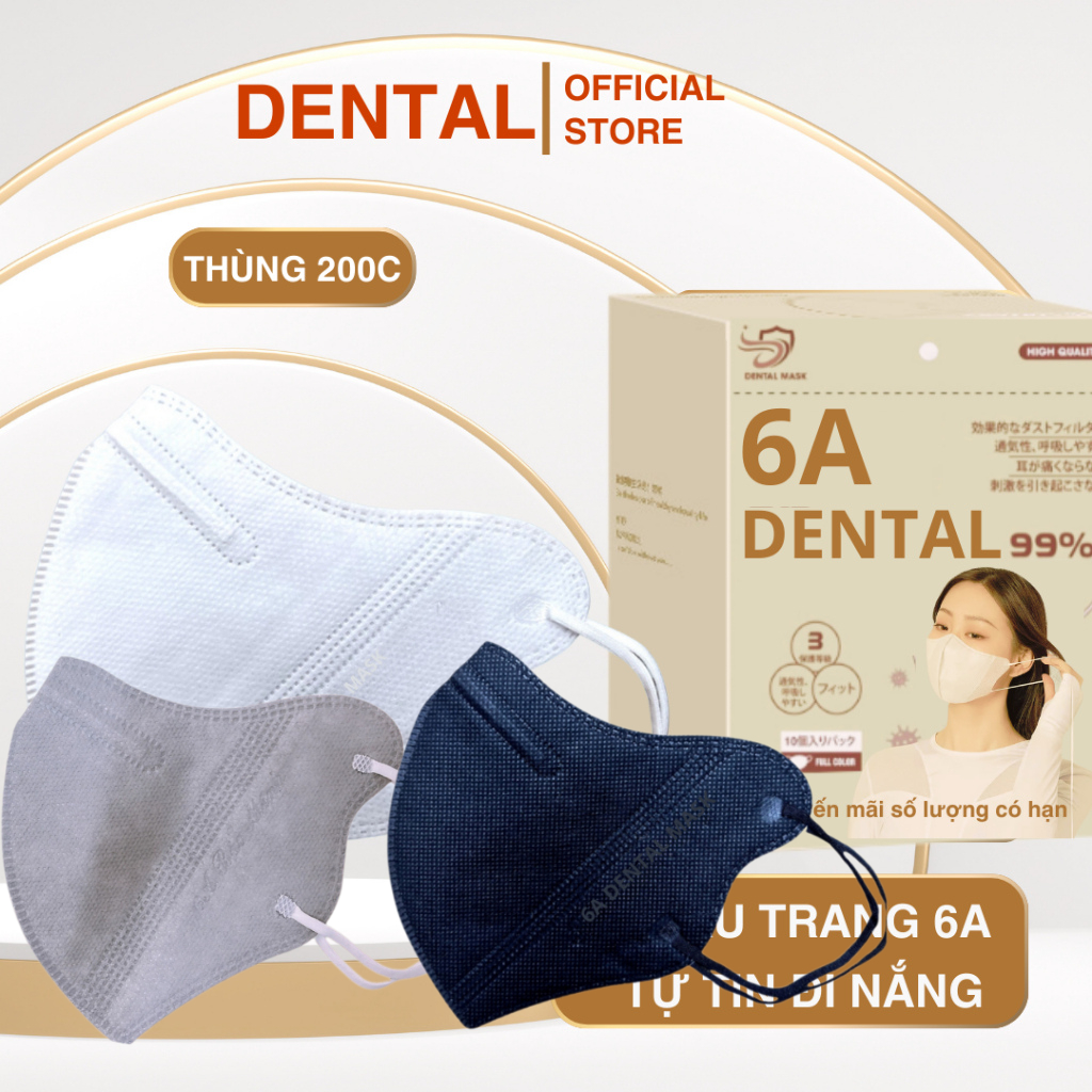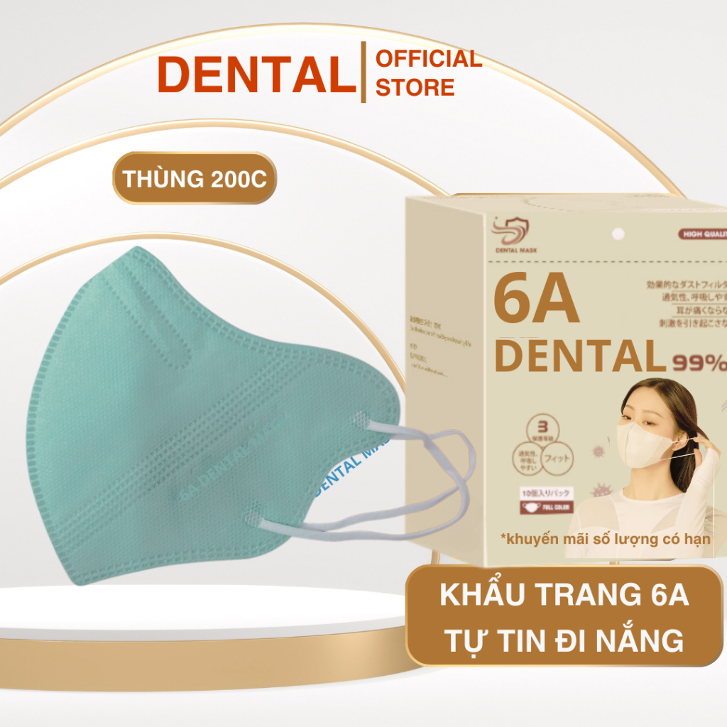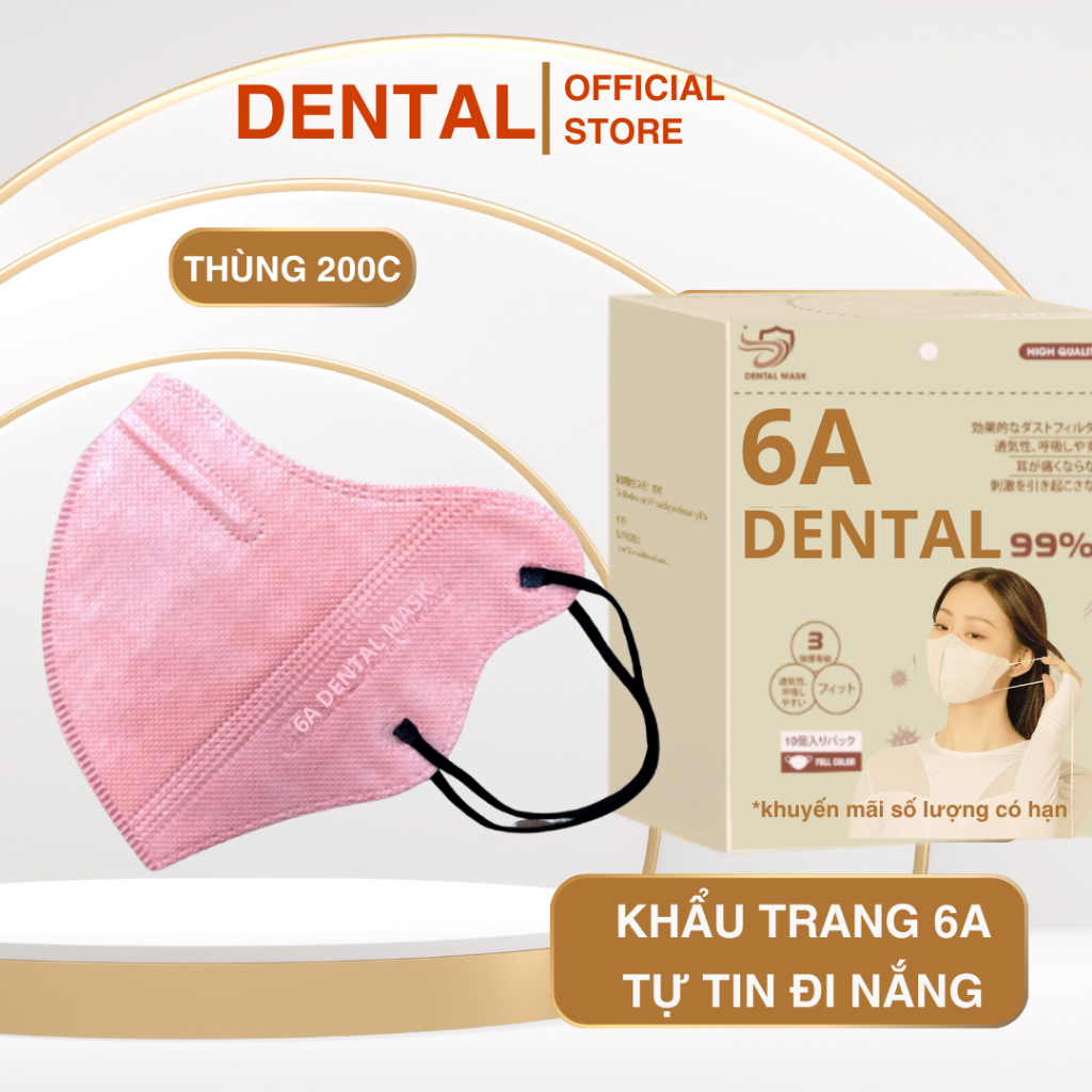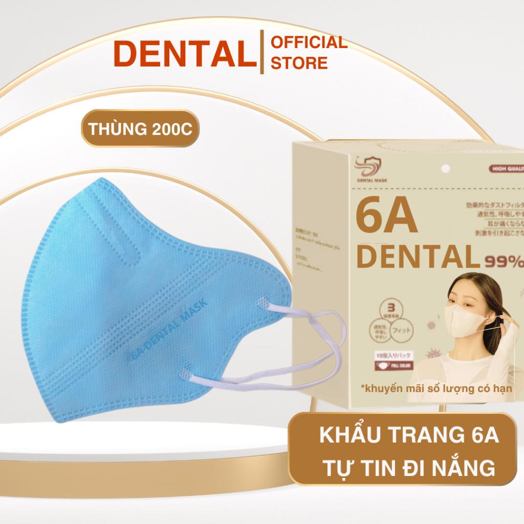 ( TẶNG 10C ) Thùng 310 Cái Khẩu trang 6A DENTAL 4 lớp kháng khuẩn, Dày Dặn - chống tia UV, che kín khuôn mặt cho mùa hè