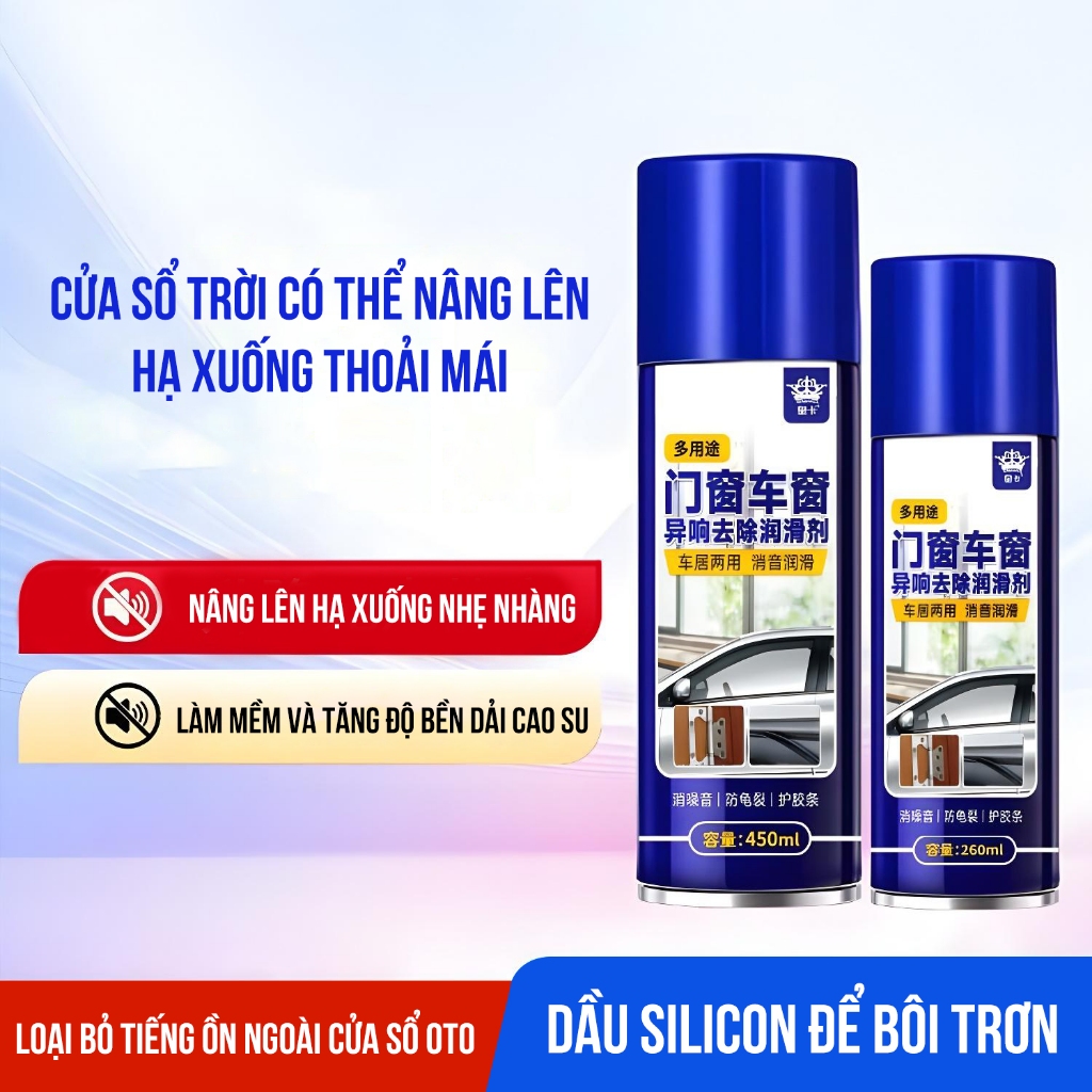 Chai xịt bôi trơn cửa kính ô tô, bảo dưỡng gioăng cao su nhựa chống kẹt kính nóc cửa xe hơi