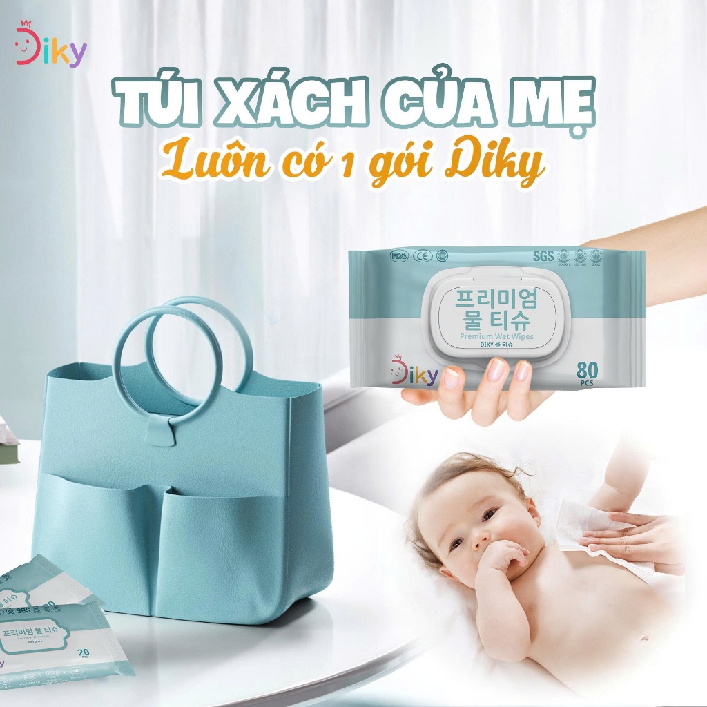 Combo Khăn Ướt DIKY 80 +20 Tờ - Khăn Siêu Mềm, Kháng Khuẩn, Tiện Lợi, Vệ Sinh An Toàn Cho Bé