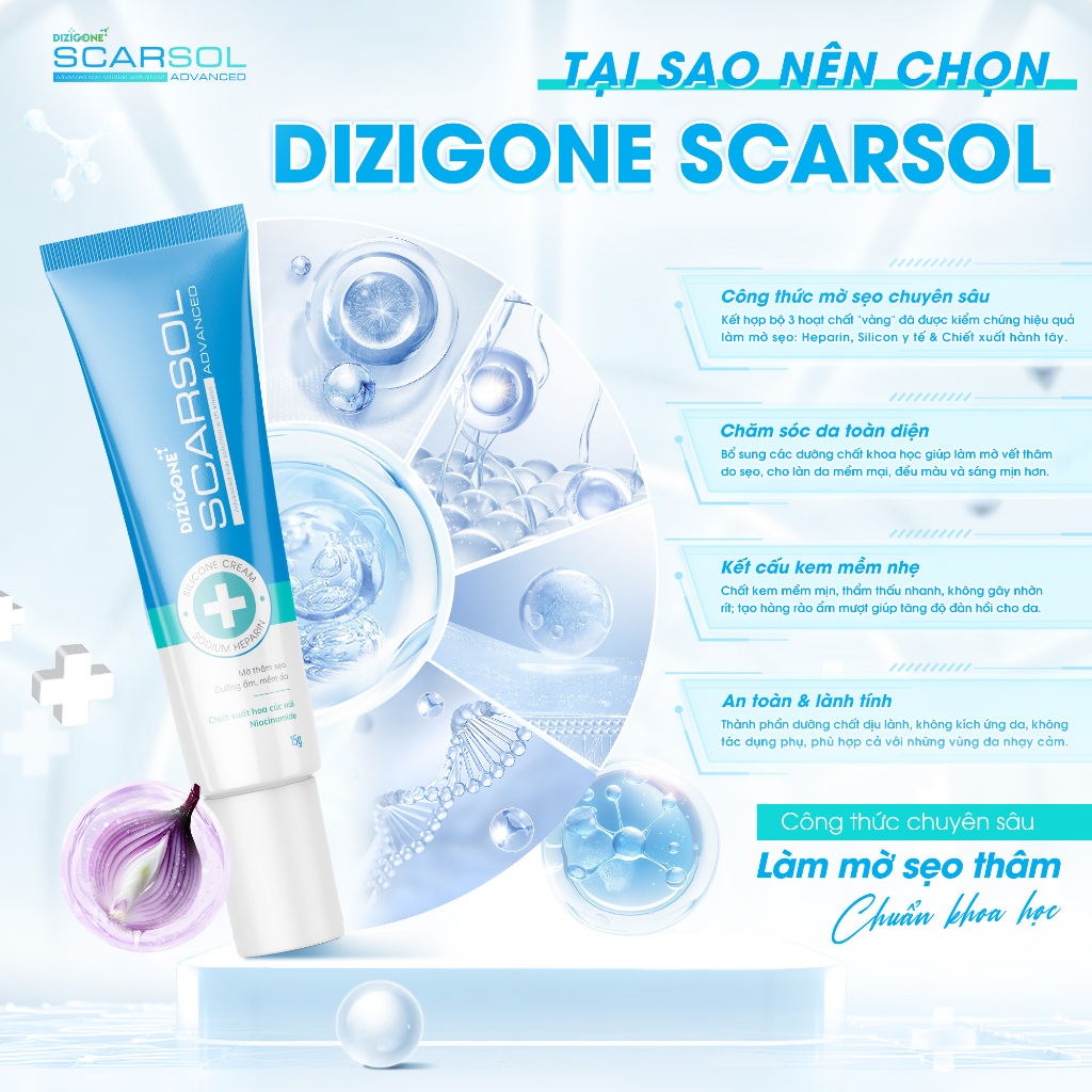 Kem Dizigone Scarsol: Kem mờ thâm sẹo, làm đều màu da, phục hồi và tái tạo da - Tuýp 15g