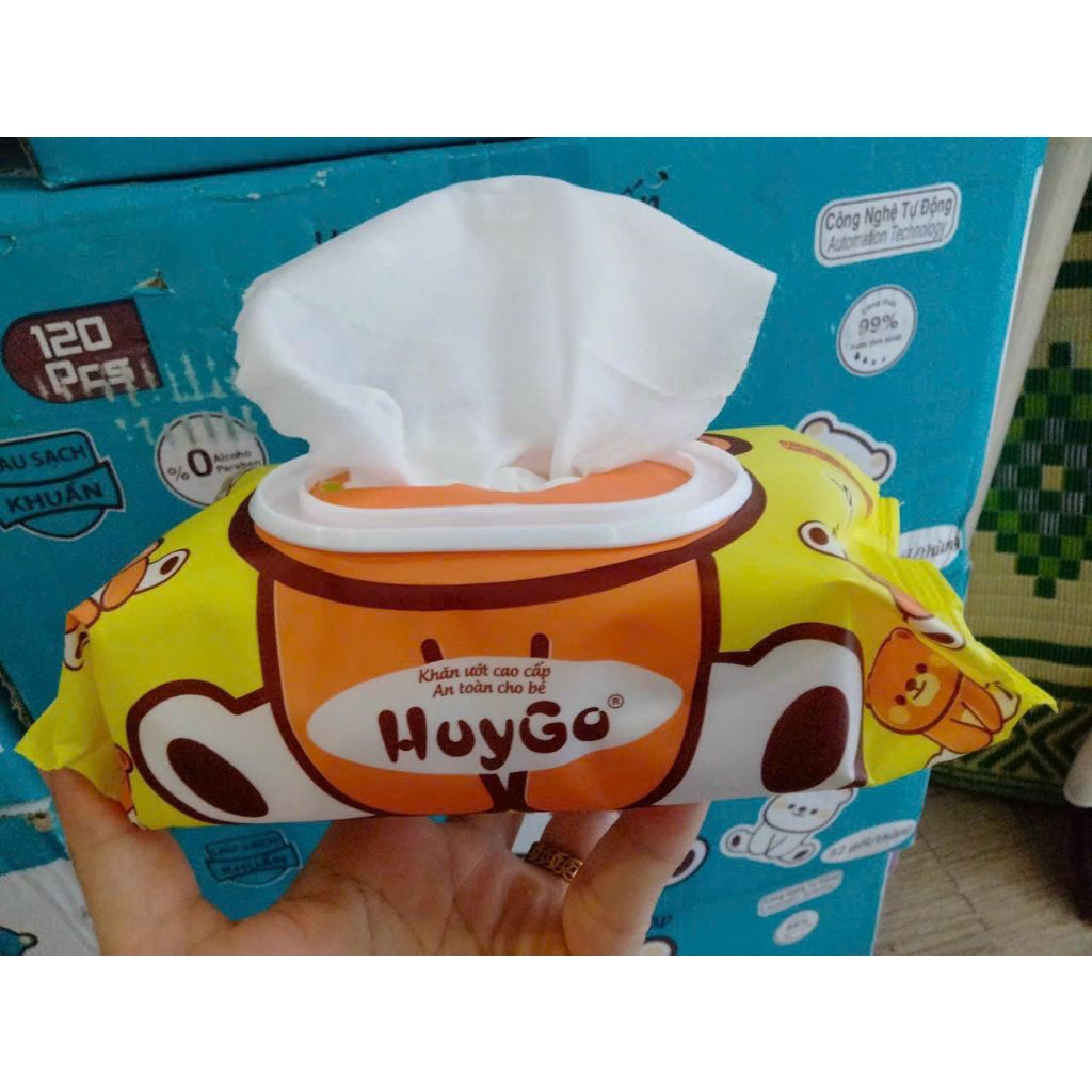 khăn ướt baby Huygo VIP 1 gói/120 tờ siêu tiết kiệm,ko nhờn da,an toàn cho bé sơ sinh