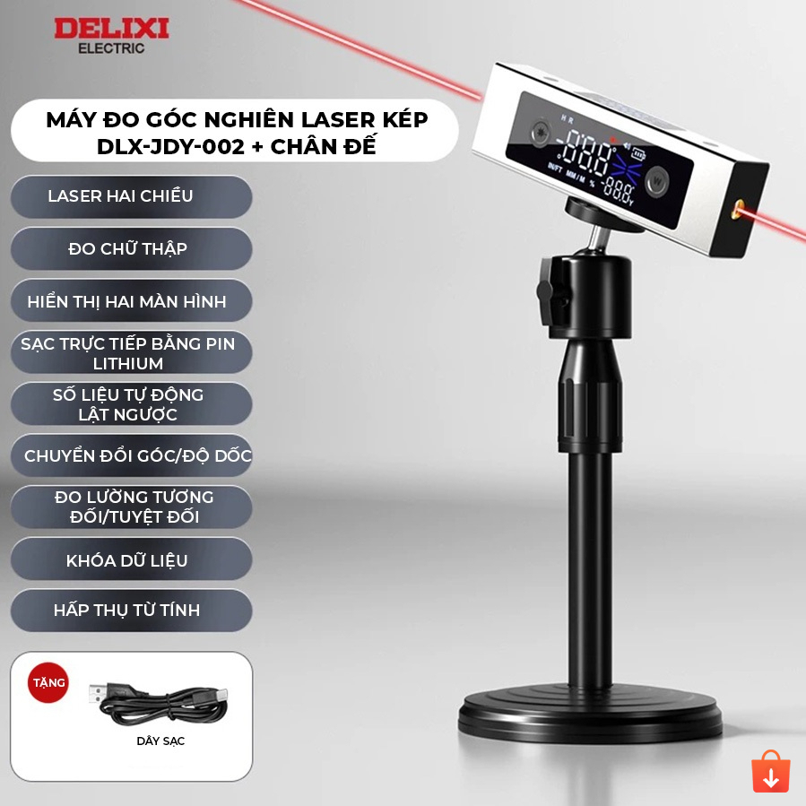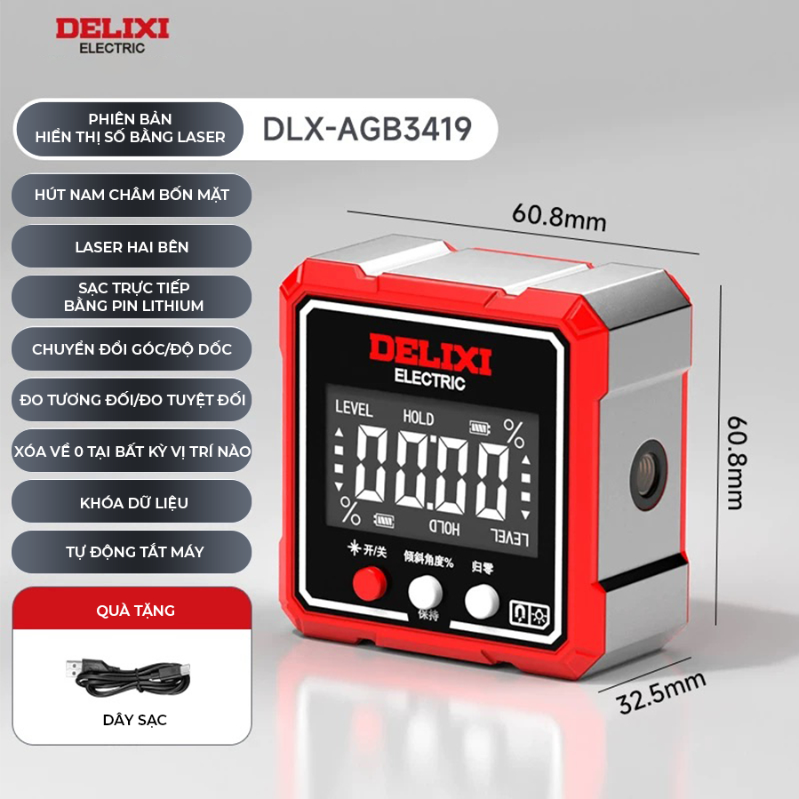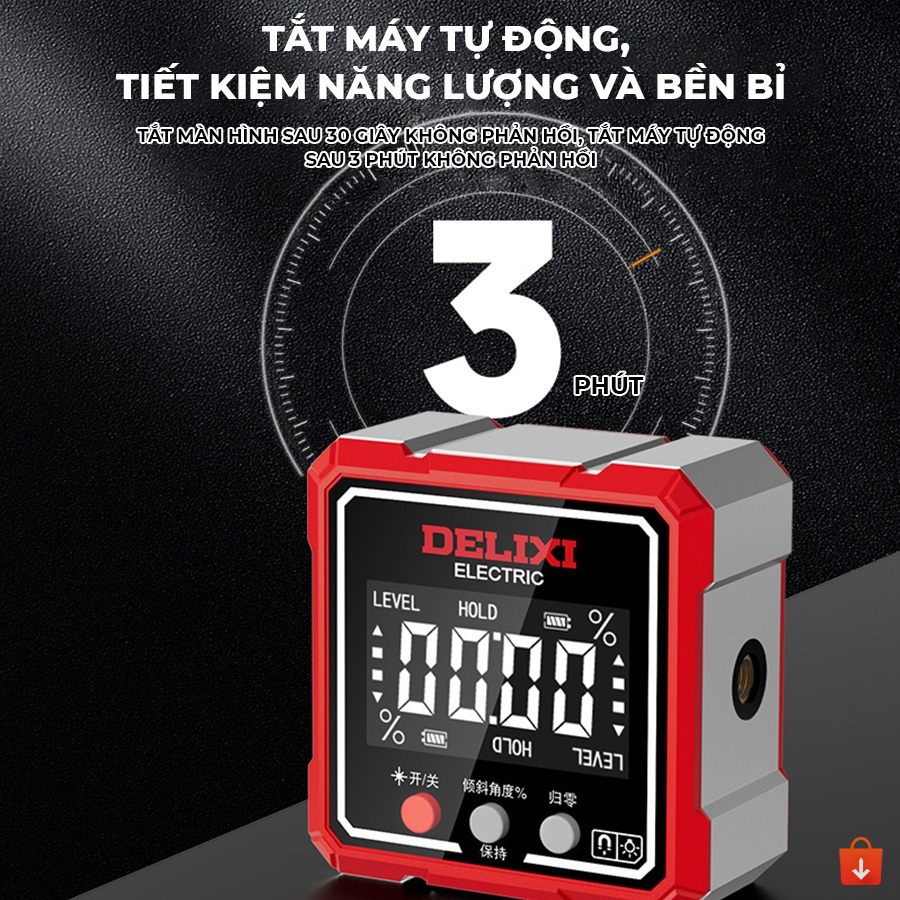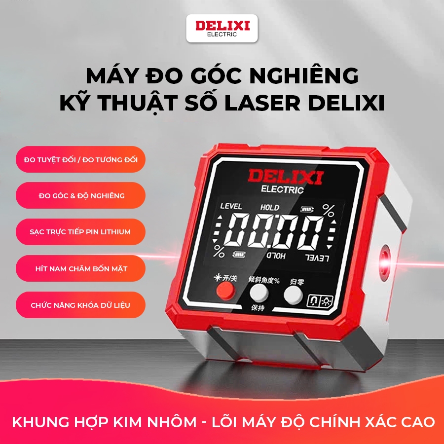 Máy đo nghiêng Delixi hộp đo góc laser điện tử kỹ thuật số độ có nam châm