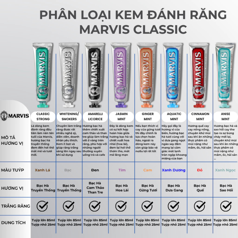 [CHÍNH HÃNG Ý] Kem Đánh Răng Marvis cao cấp [ĐỦ MÙI] Marvis 85ml - Beoi Mart