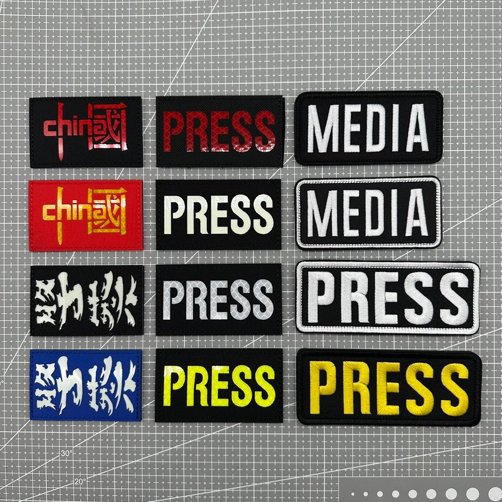 [Tùy chỉnh] QN PRESS news media phóng viên tiếng Anh thêu chữ cái MEDIA phản quang 3D Velcro Patch / Huy hiệu / băng tay / Biểu tượng trang trí cho áo khoác Jeans Mũ ba lô