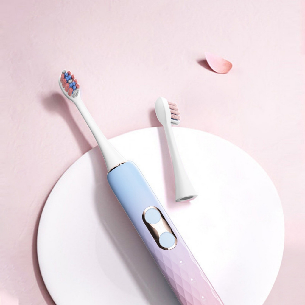 Bàn chải điện HALIWAY Plus mạ Titan tích hợp máy rửa mặt 3 chế độ, tặng kèm 4 đầu chải BT2