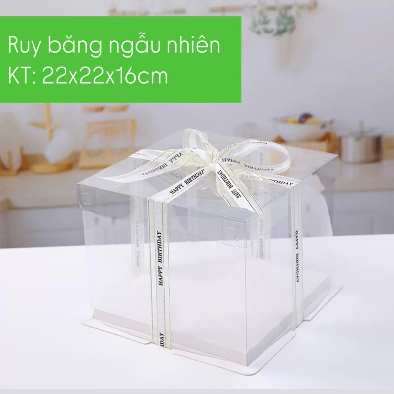 (KÈM RUY BĂNG) Hộp MICA Hình Vuông đựng bánh kẹo, bánh sinh nhật, quà tặng, quà tết, mô hình - (sỉ inbox)