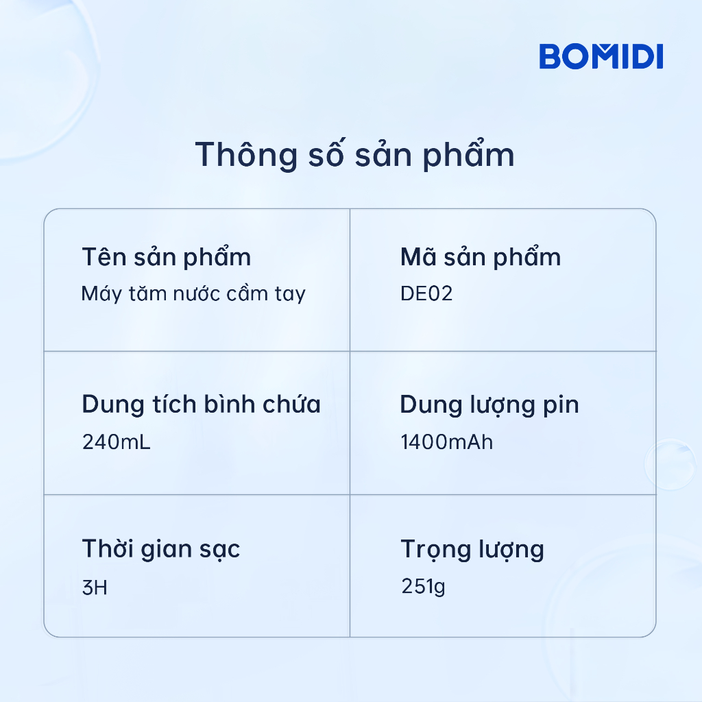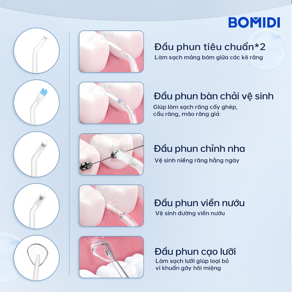 Máy Tăm Nước BOMIDI DE02- Tăm Nước Cầm Tay 3 chế độ dùng được răng Miềng 240ML Làm Sạch Răng