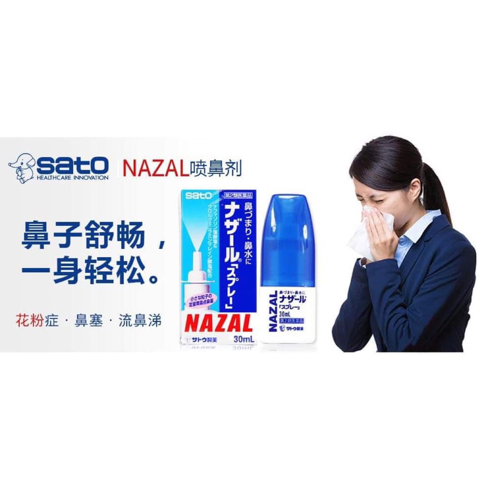 Xịt mũi Nazal Nhật Bản 30ml - Xịt chống Ngạt Mũi, Sổ Mũi, Viêm Xoang