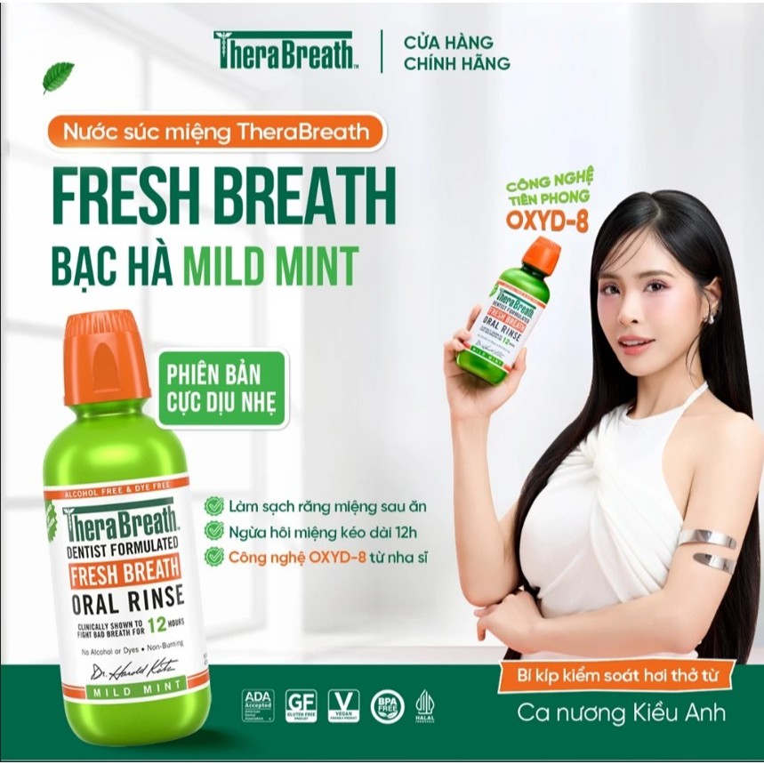 Nước Súc Miệng TheraBreath Giảm Hôi Miệng. Xanh Lá: Dịu Nhẹ & The Mát - Giải Pháp Cho Nướu Nhạy Cảm