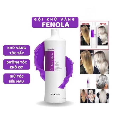 Dầu gội tím Fanola No Yellow 1000ml, dầu gội khử vàng chính hãng, dầu gội giữ màu dành cho tóc tẩy nhuộm màu thời trang