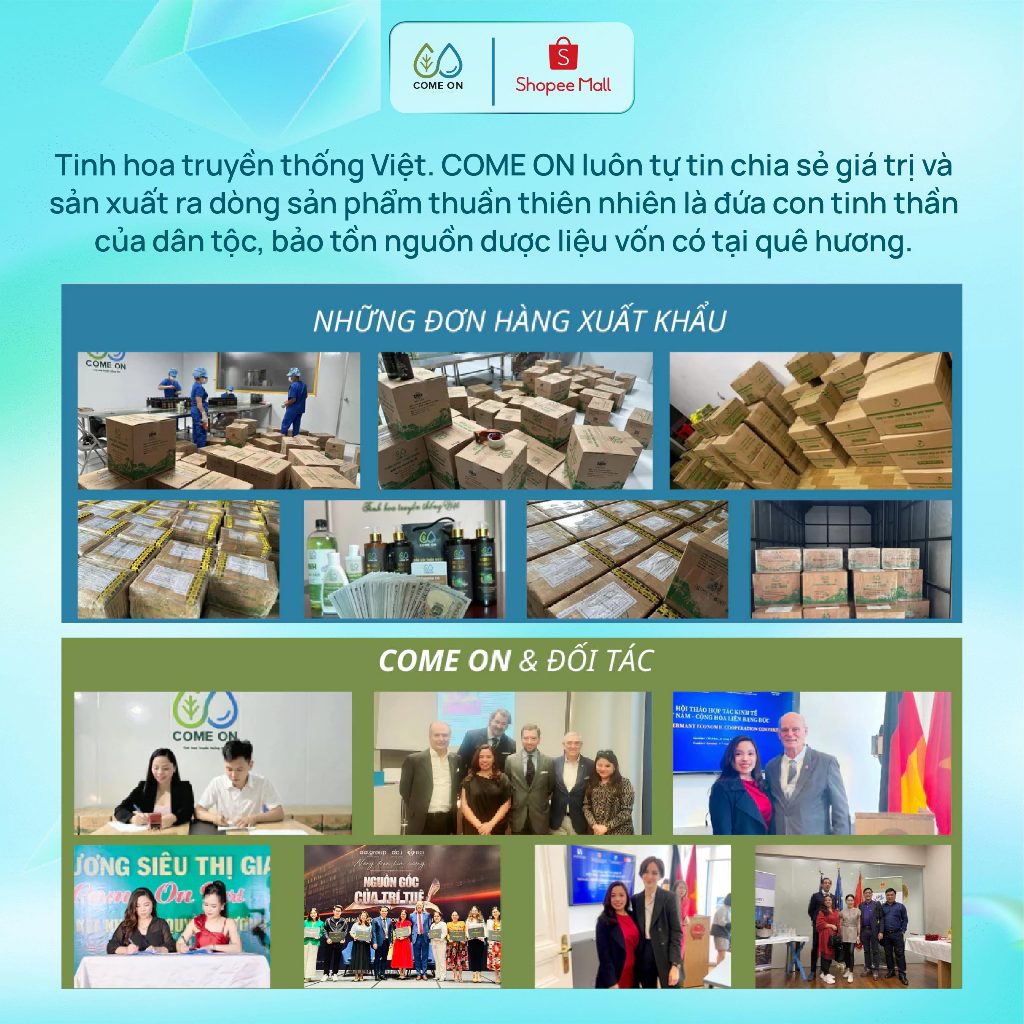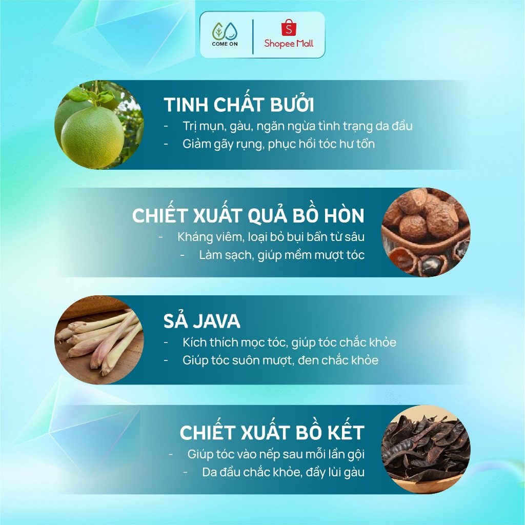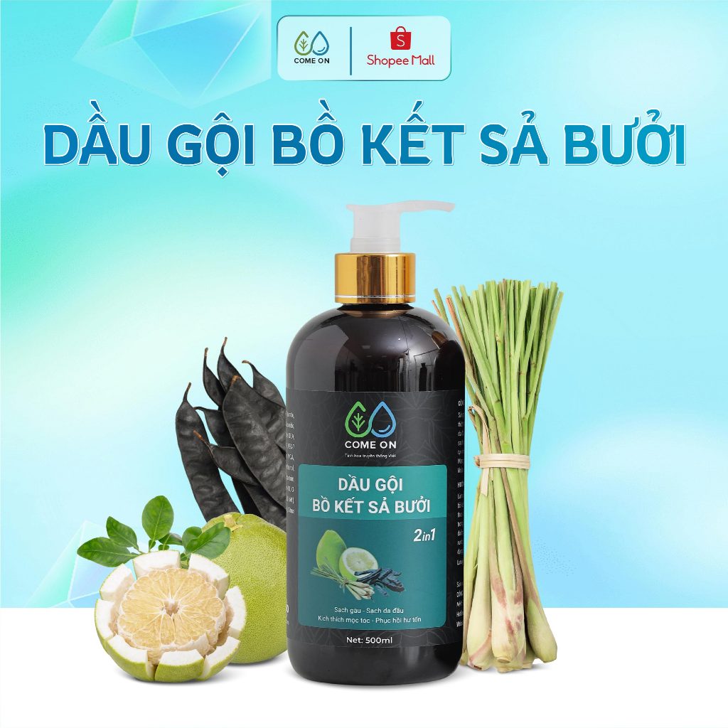 Dầu gội hữu cơ Bưởi, Sả, Bồ Kết COME ON 500ml, sản phẩm tự nhiên an toàn lành tính cho mẹ