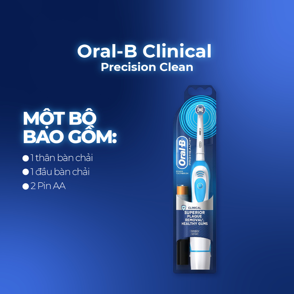 Máy Đánh Răng Pin Precision Clean - Đầu Chải Làm Sạch Chính Xác, Dùng pin AA, Hẹn Giờ 2-Phút